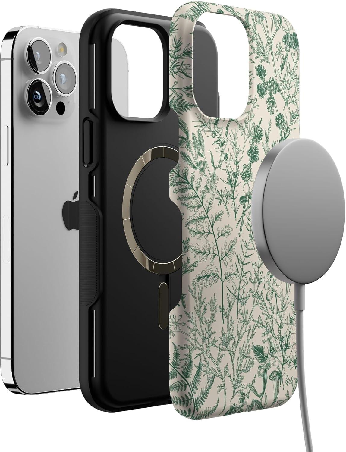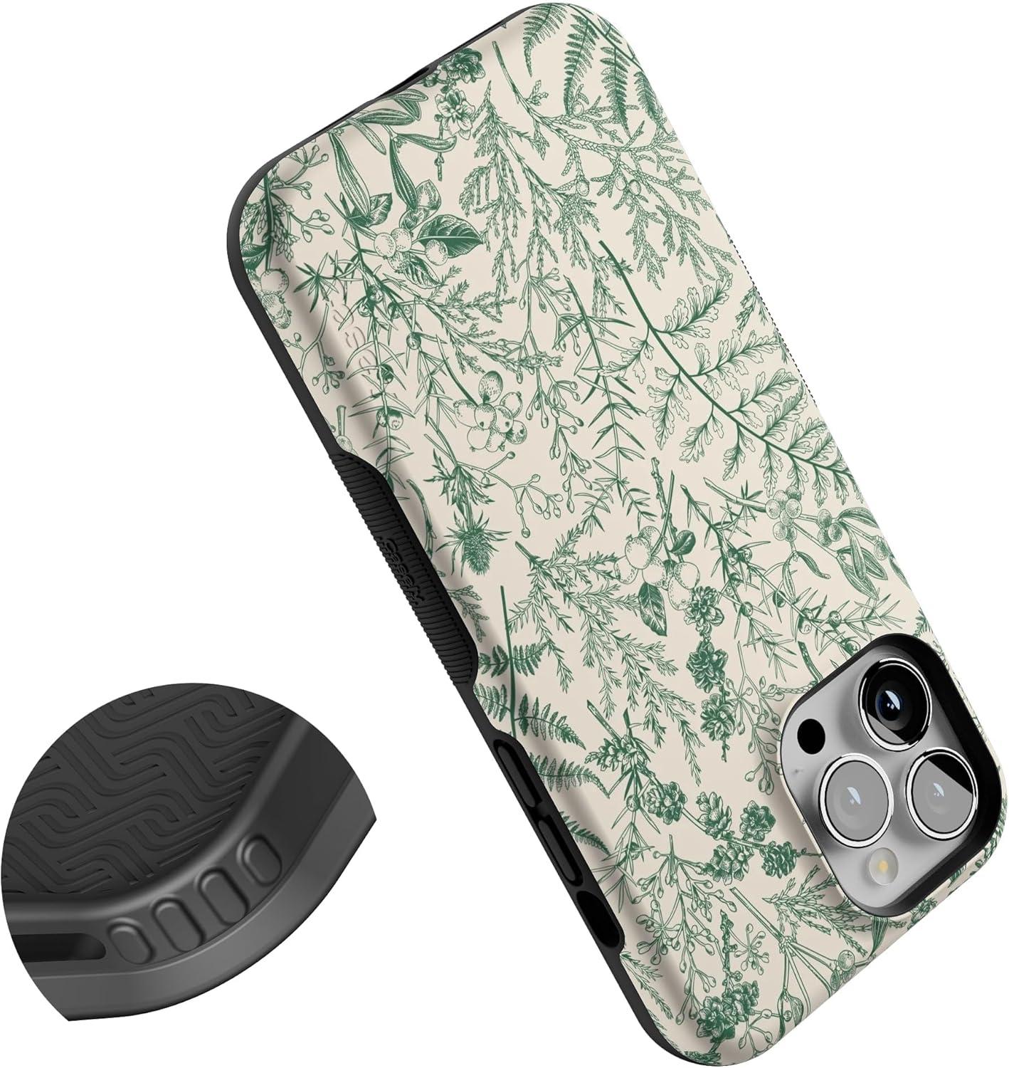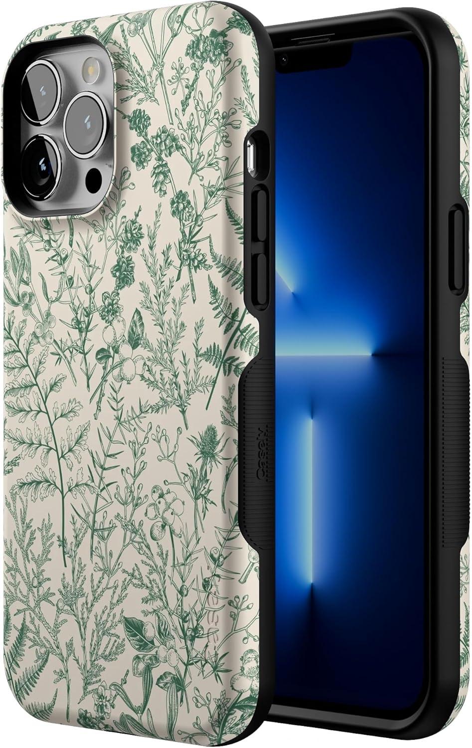 Casely iPhone 13 Pro Max Case | Poppy Meadows | Pastel Floral | Bold Protective Design | Compatible with MagSafe(Sage Garden | Green Floral)