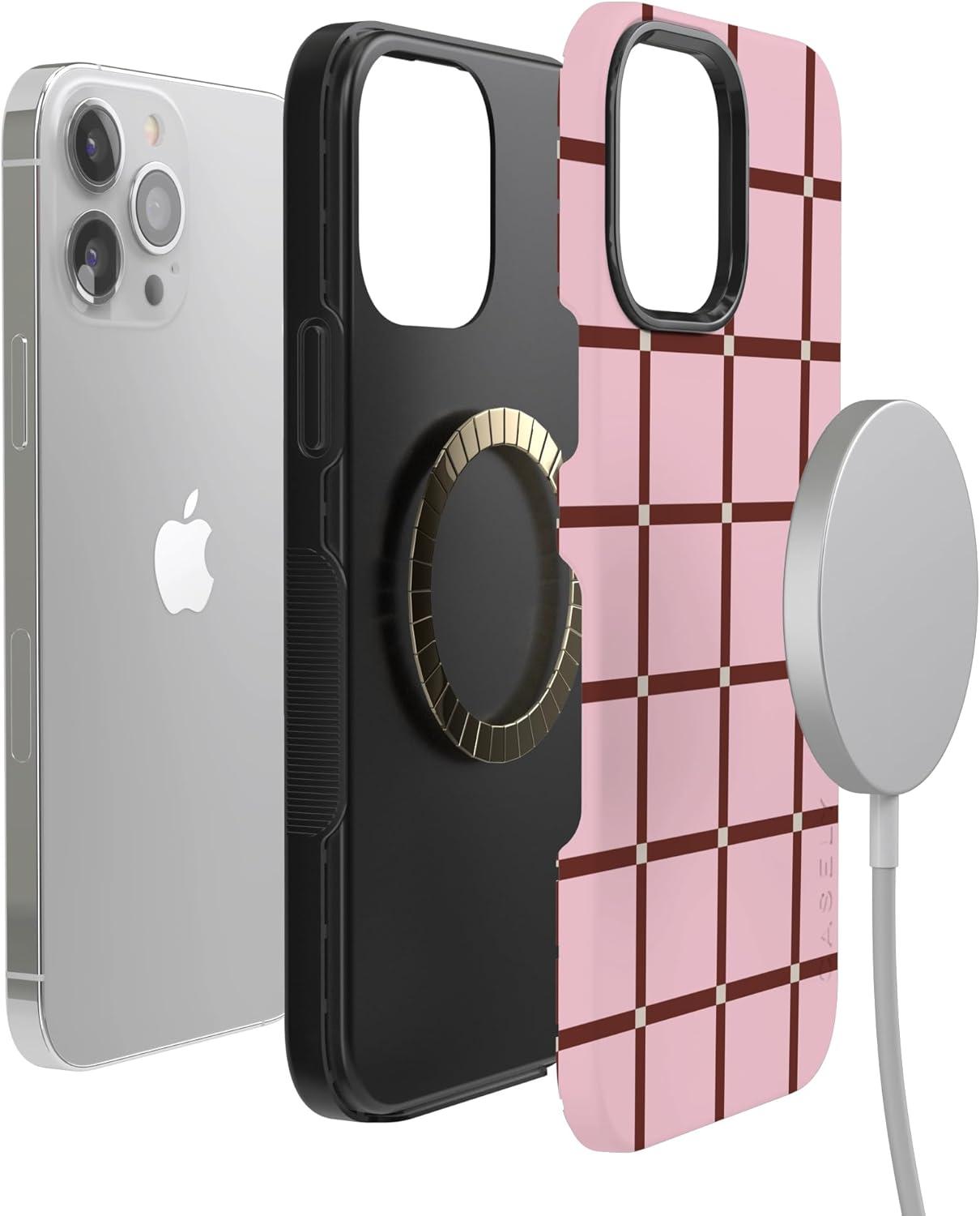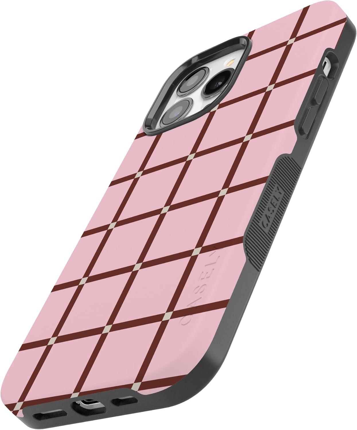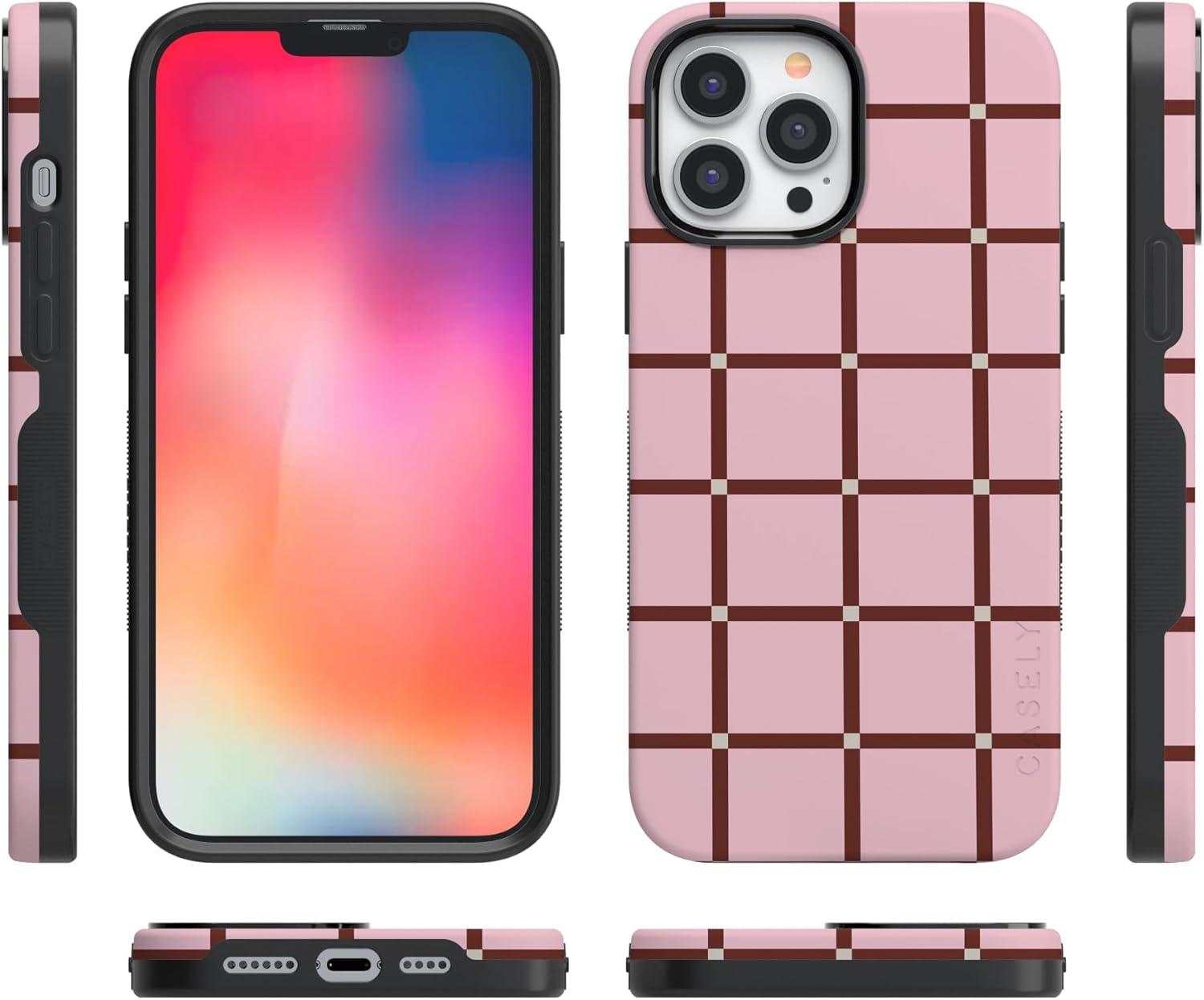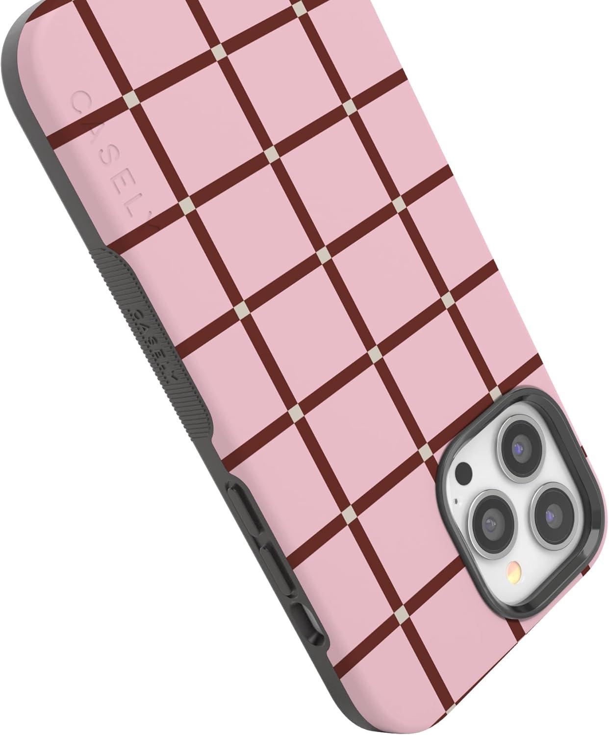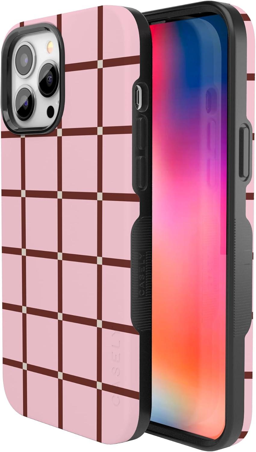 Casely iPhone 13 Pro Max Case | Poppy Meadows | Pastel Floral | Bold Protective Design | Compatible with MagSafe(Uptown Gridlock | Pink Checkerboard)