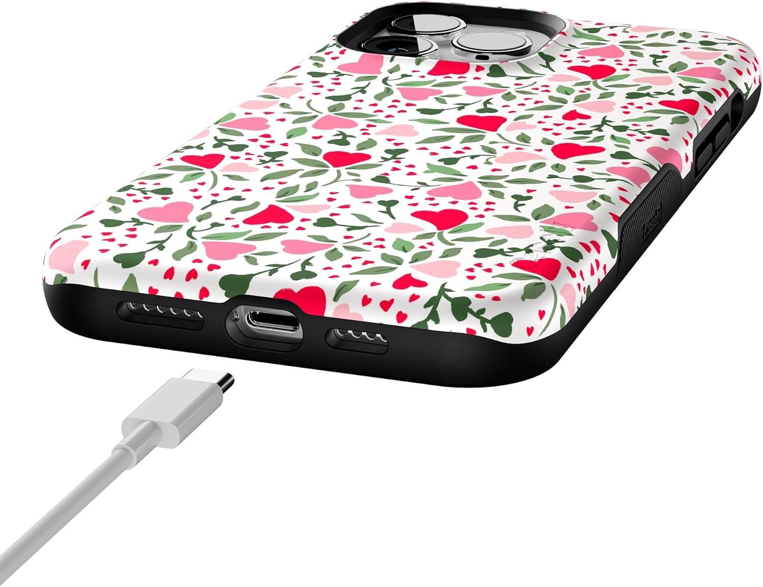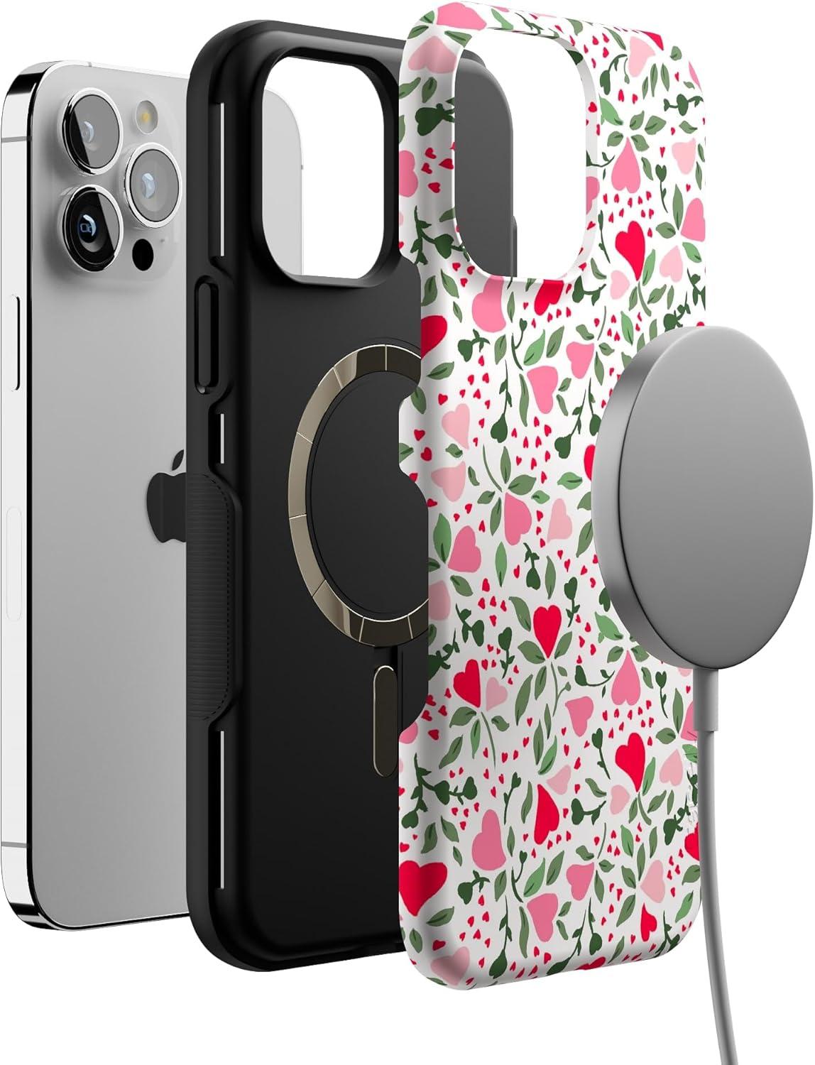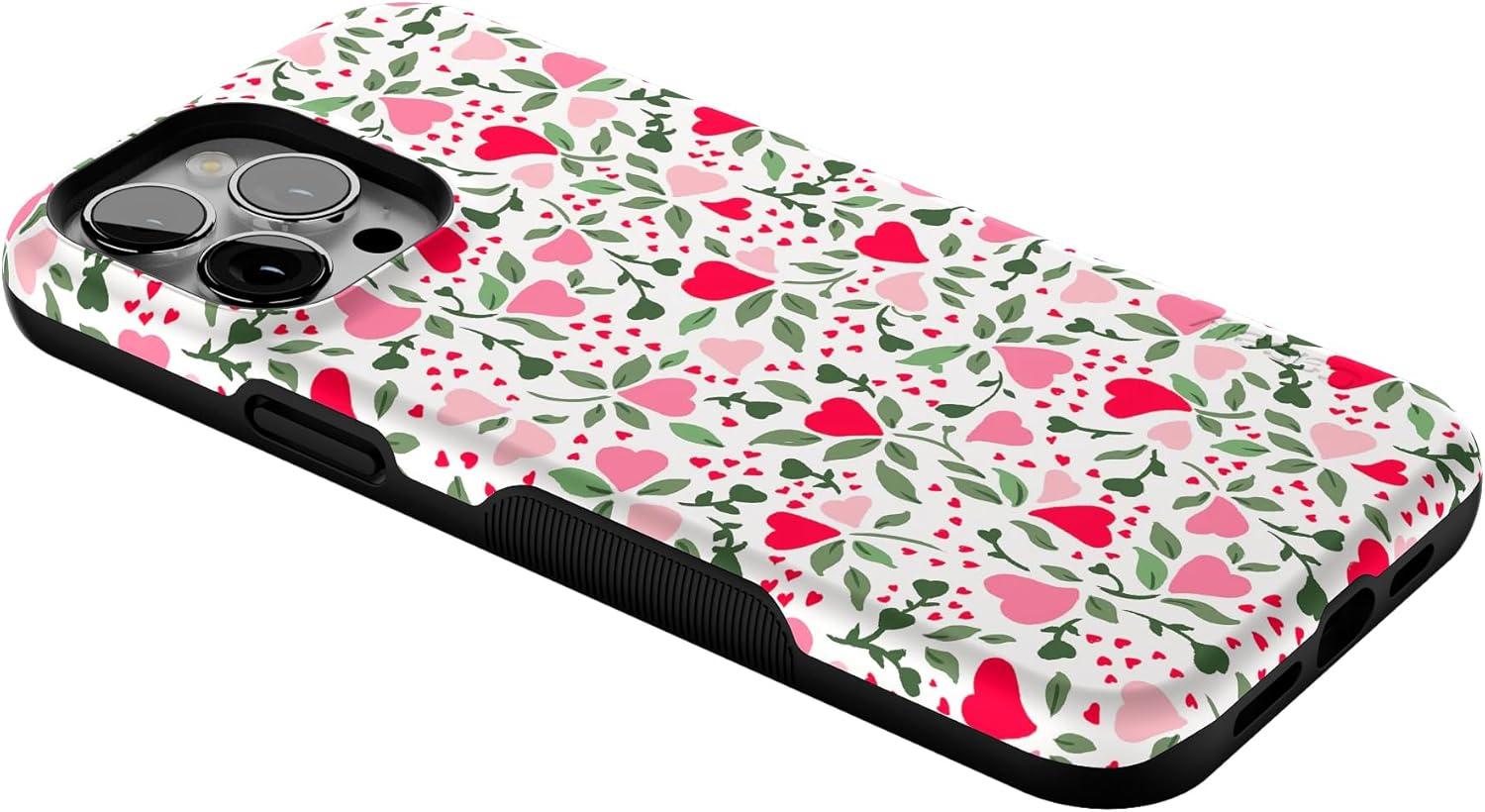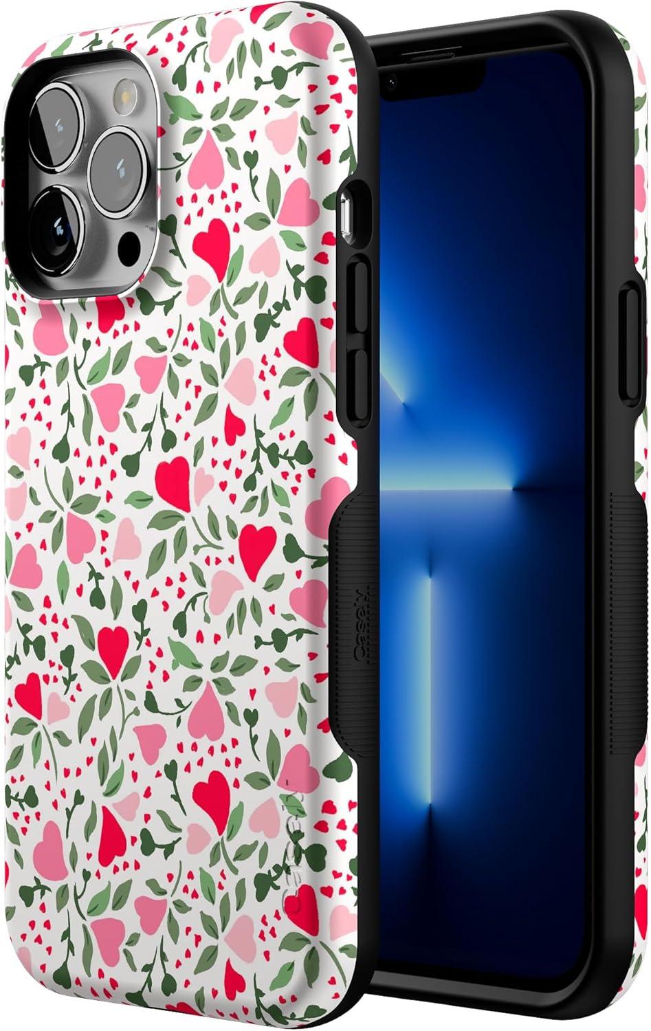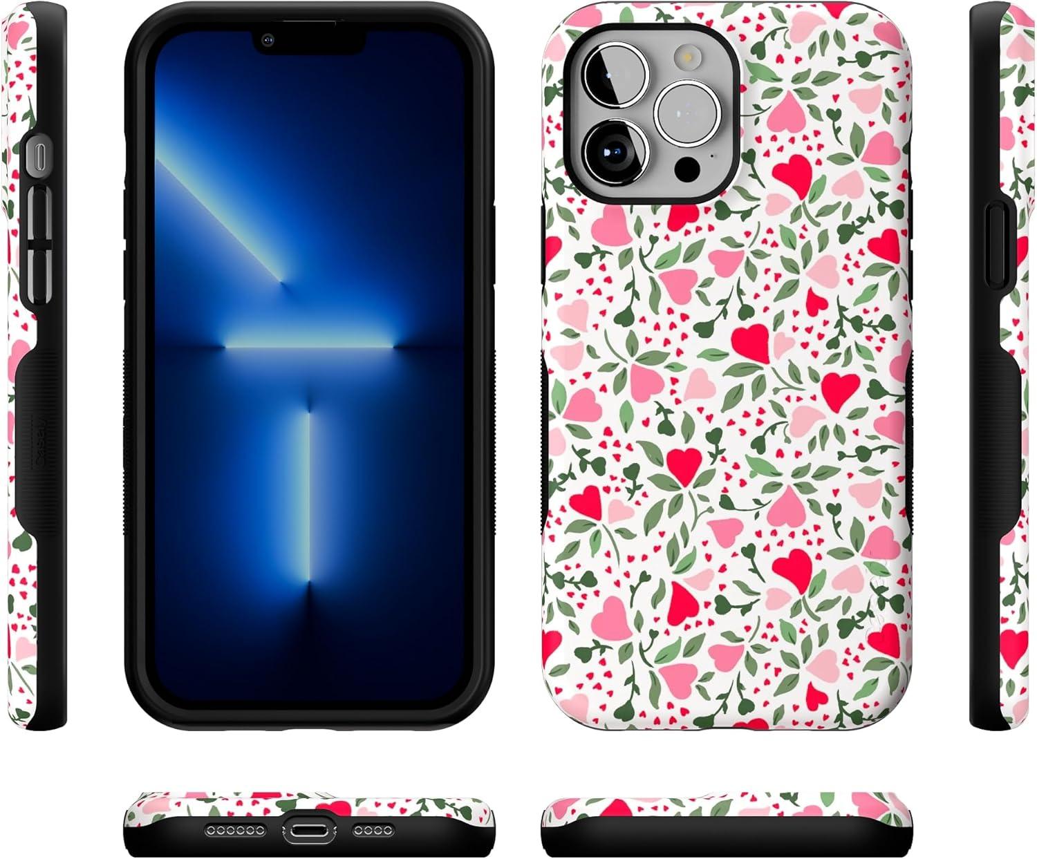 Casely iPhone 13 Pro Max Case | Poppy Meadows | Pastel Floral | Bold Protective Design | Compatible with MagSafe(Vines of Love | Floral Heart)