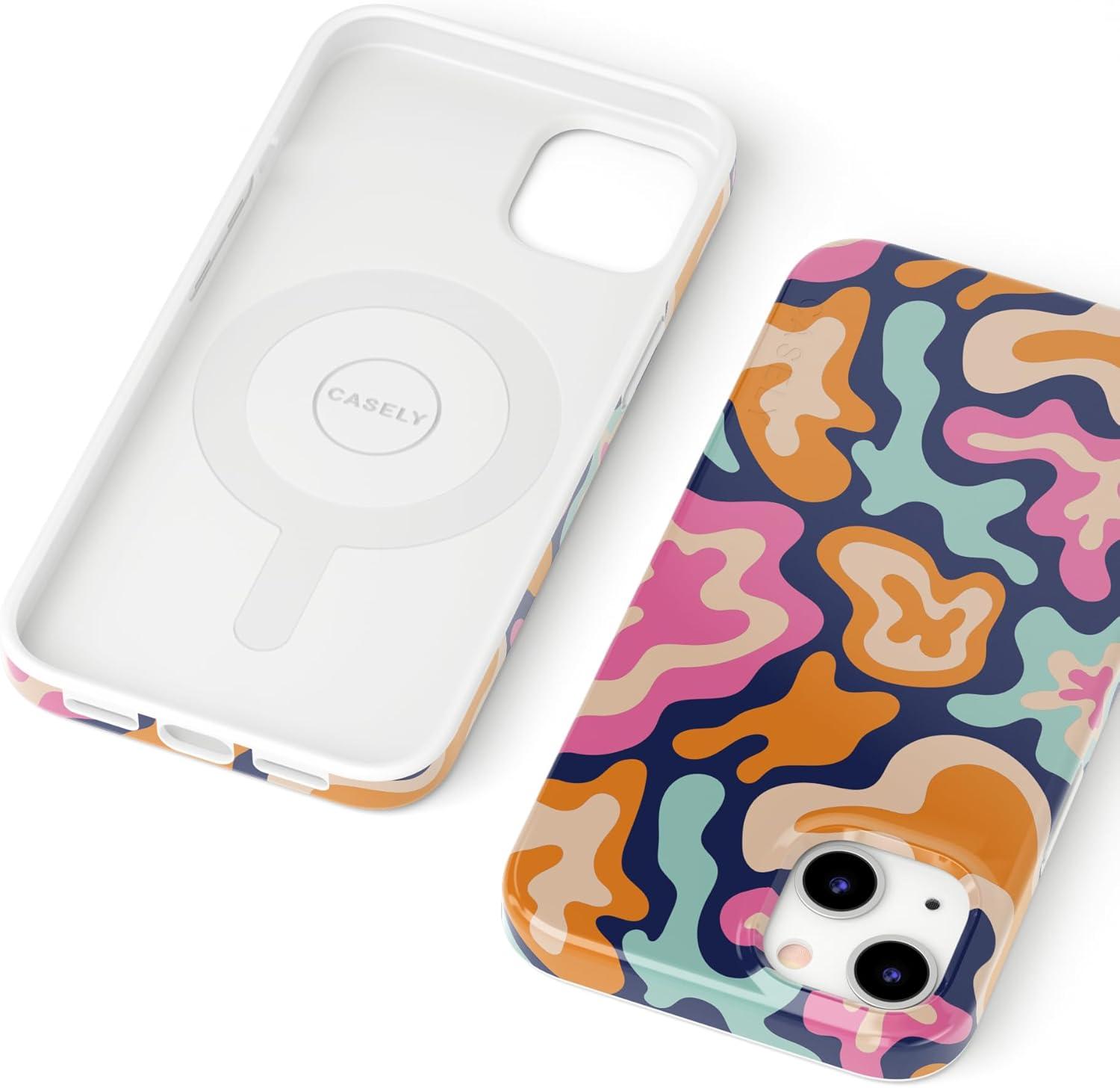 Casely iPhone 14 Case | All Smiles | Smiley Face Sticker | Compatible with MagSafe | Classic Ultra Slim Design(Midnight Color Splash | Abstract Retro)