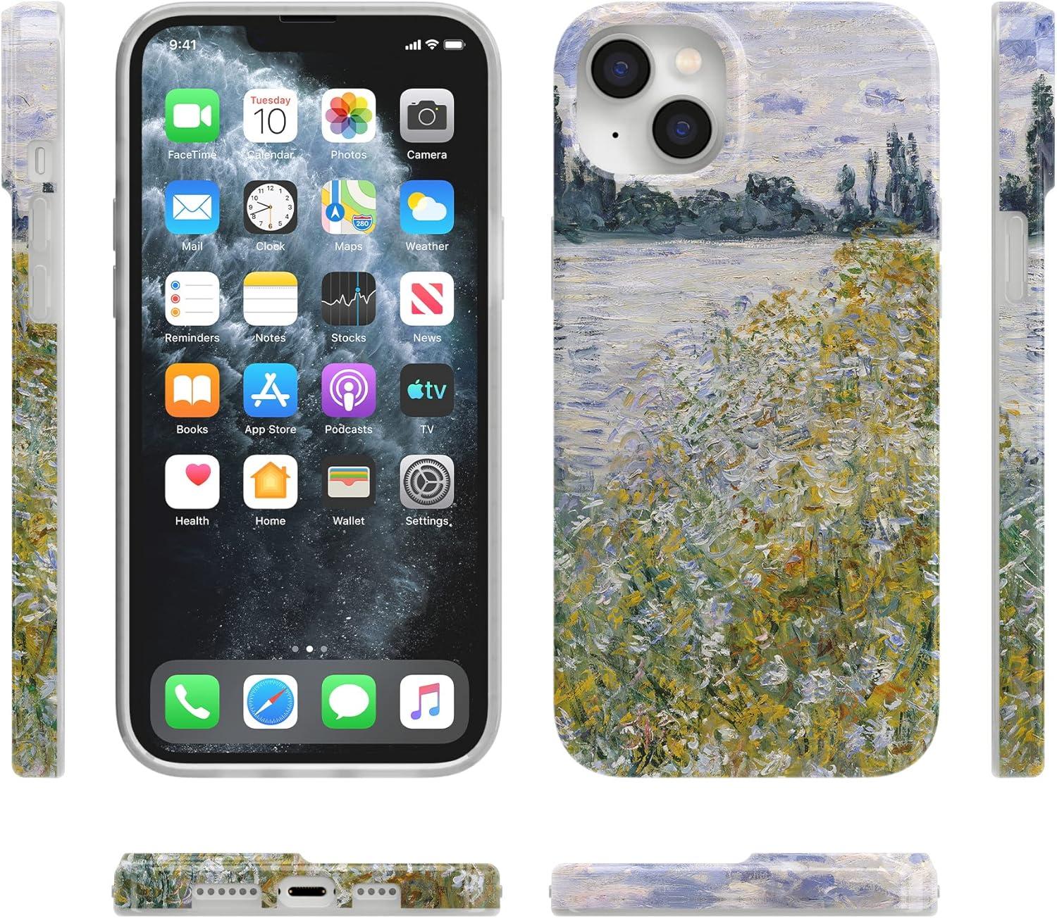 Casely iPhone 14 Case | All Smiles | Smiley Face Sticker | Compatible with MagSafe | Classic Ultra Slim Design(Monet’s Summer Landscape | The Met Museum)