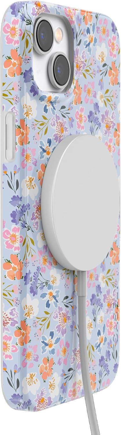 Casely iPhone 14 Case | All Smiles | Smiley Face Sticker | Compatible with MagSafe | Classic Ultra Slim Design(Poppy Meadows | Pastel Floral)