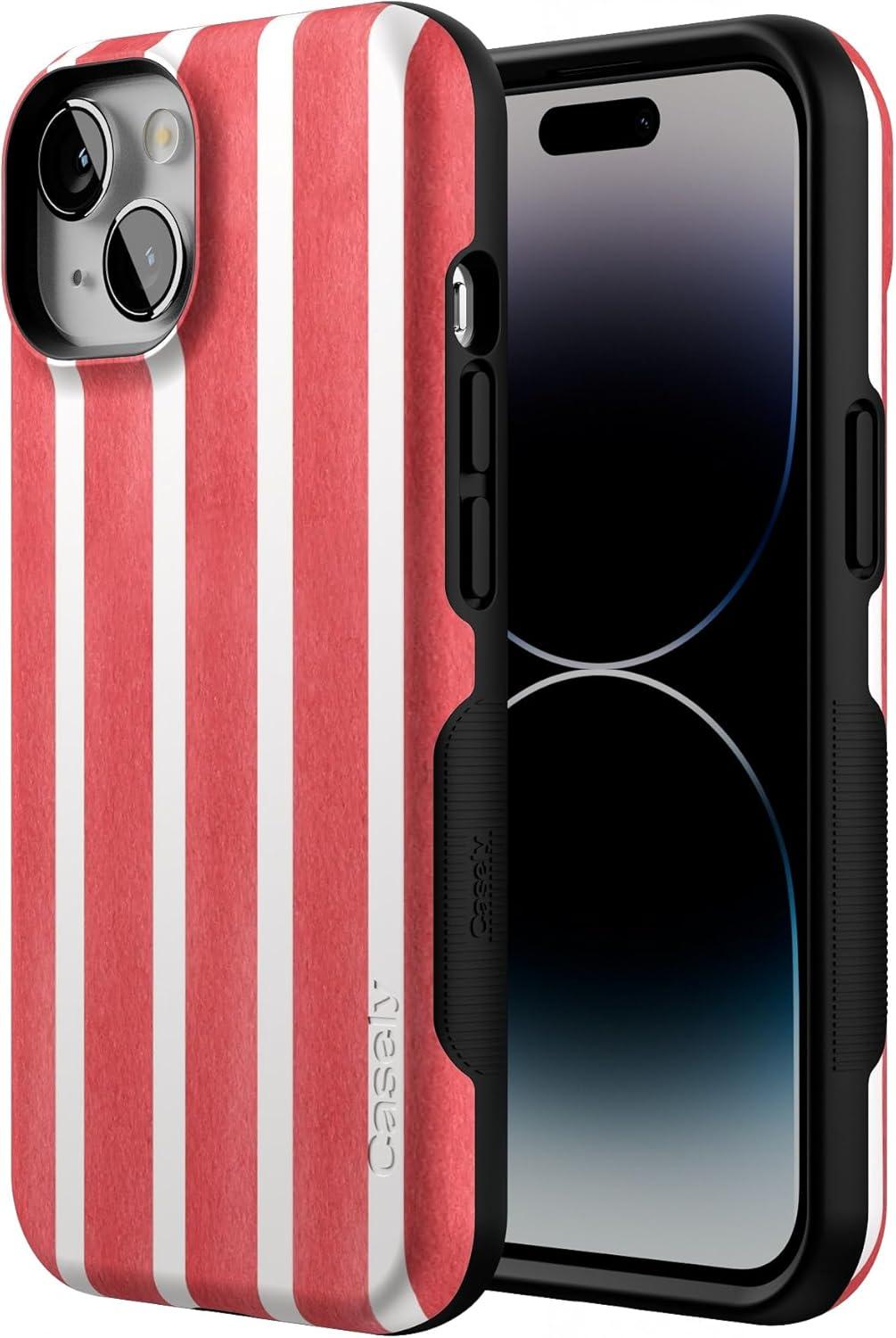 Casely iPhone 14 Case | Blue Awakening | Van Gogh Almond Blossom | Compatible with MagSafe | Bold Protective Design(East Coast Summer | Red Stripes)