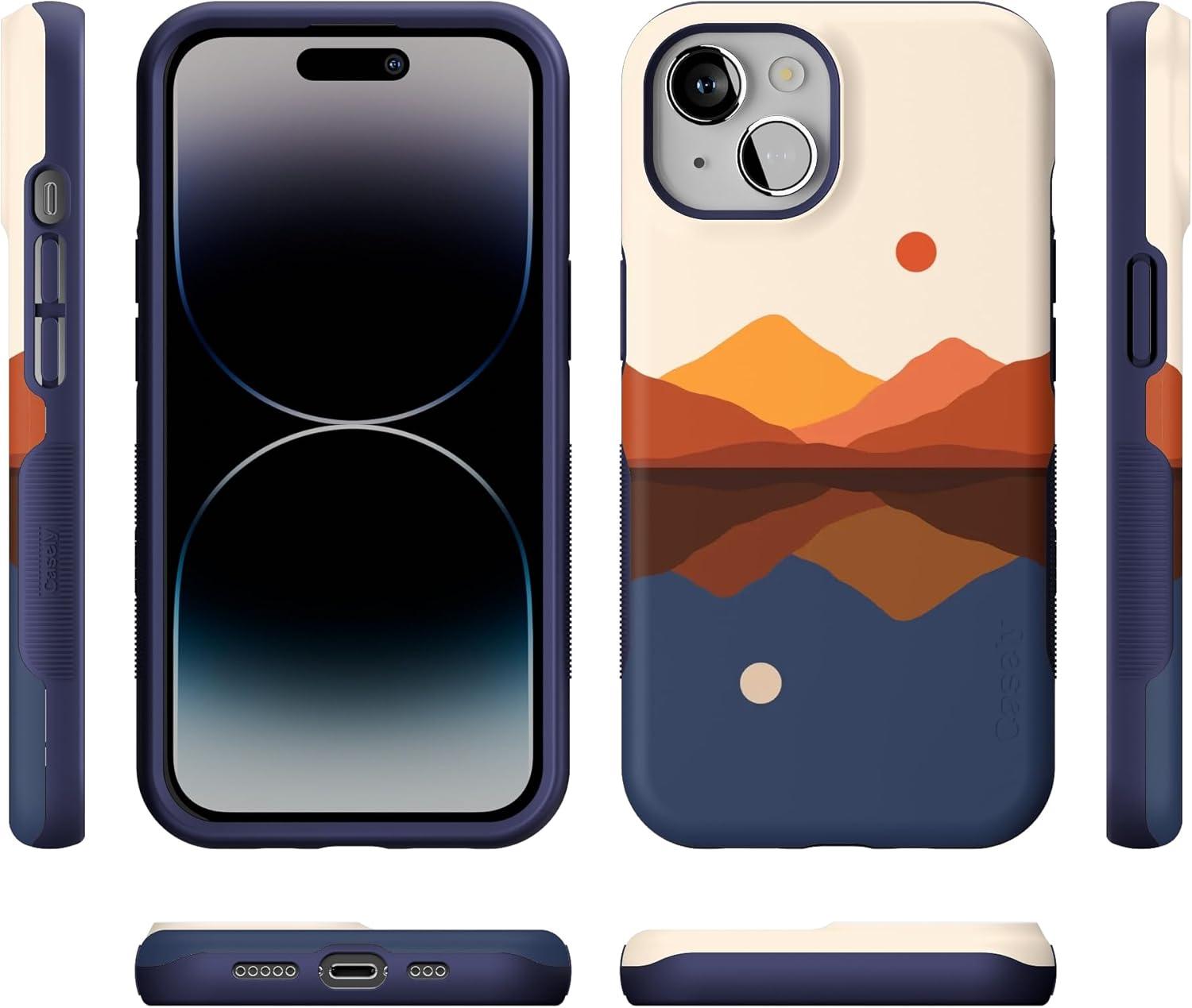 Casely iPhone 14 Case | Blue Awakening | Van Gogh Almond Blossom | Compatible with MagSafe | Bold Protective Design(Opposites Attract | Day & Night Mountains)
