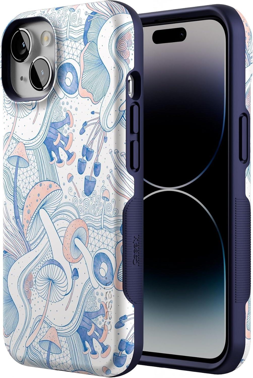 Casely iPhone 14 Case | Blue Awakening | Van Gogh Almond Blossom | Compatible with MagSafe | Bold Protective Design(The Fun Guy | Enchanted Forest Mushroom Floral)