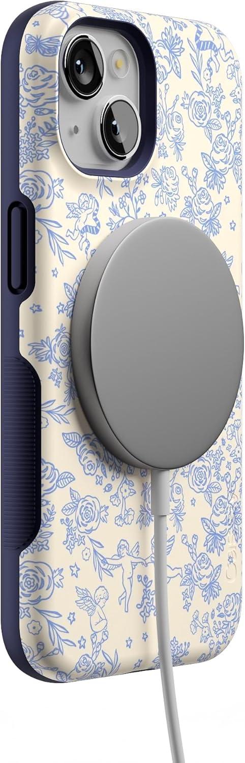 Casely iPhone 14 Case | Blue Stripes | Sunday Best | Bold Protective Design | Compatible with MagSafe(Cupid’s Canvas | Periwinkle Floral)