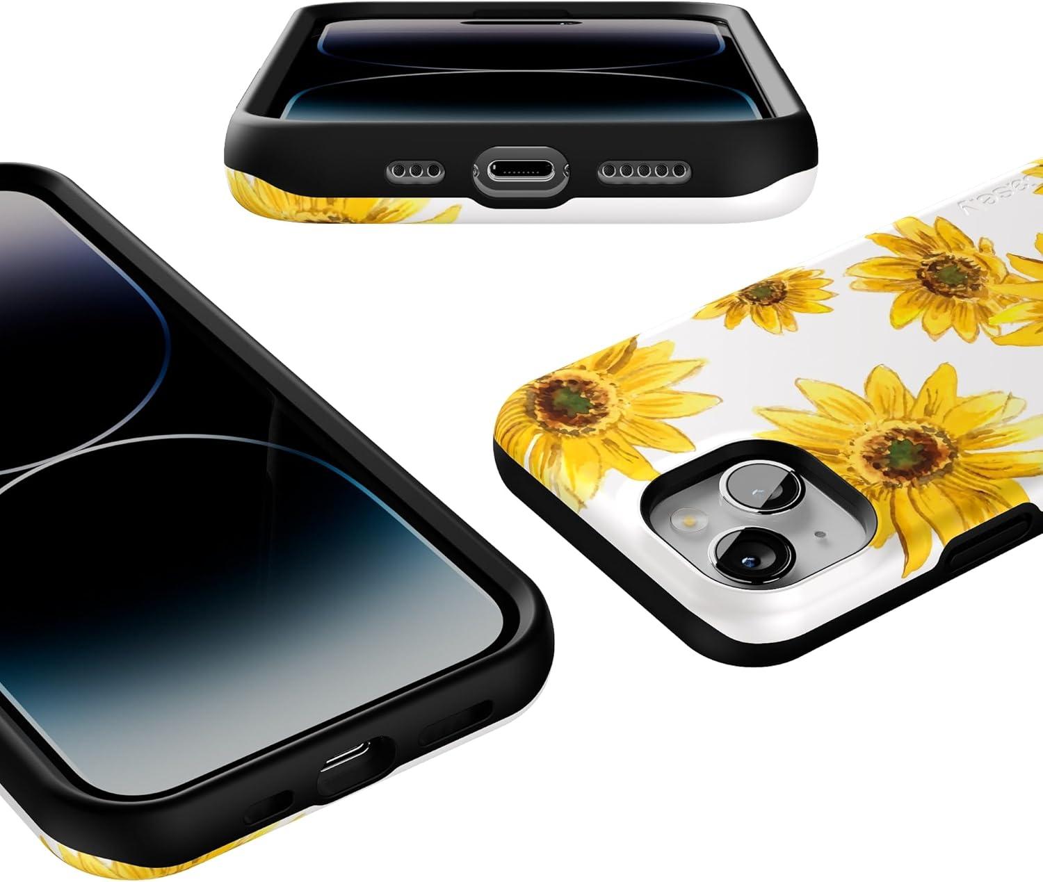 Casely iPhone 14 Case | Blue Stripes | Sunday Best | Bold Protective Design | Compatible with MagSafe(Golden Garden | Yellow Sunflower)