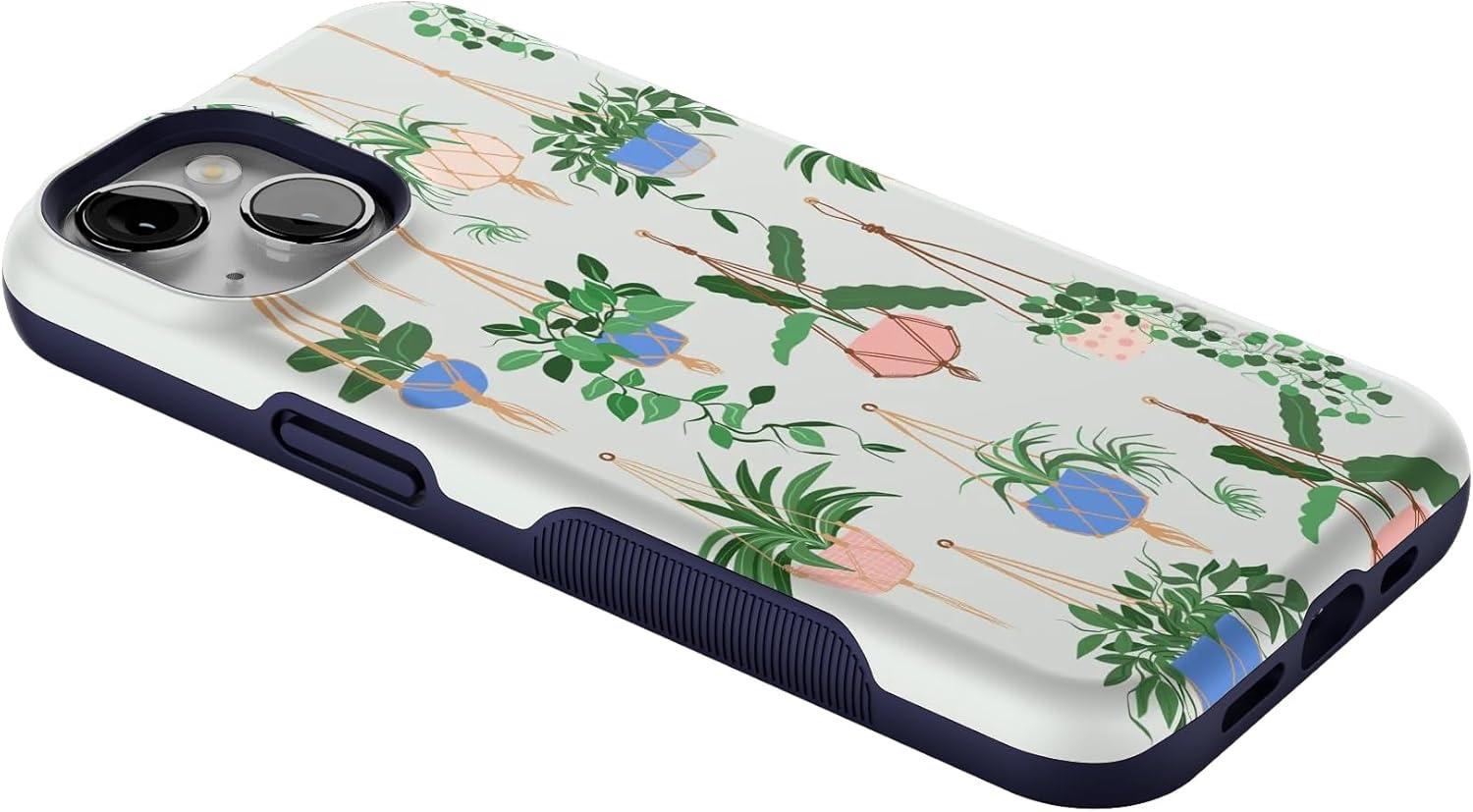 Casely iPhone 14 Case | Blue Stripes | Sunday Best | Bold Protective Design | Compatible with MagSafe(Hanging Around | Potted Plants Floral)