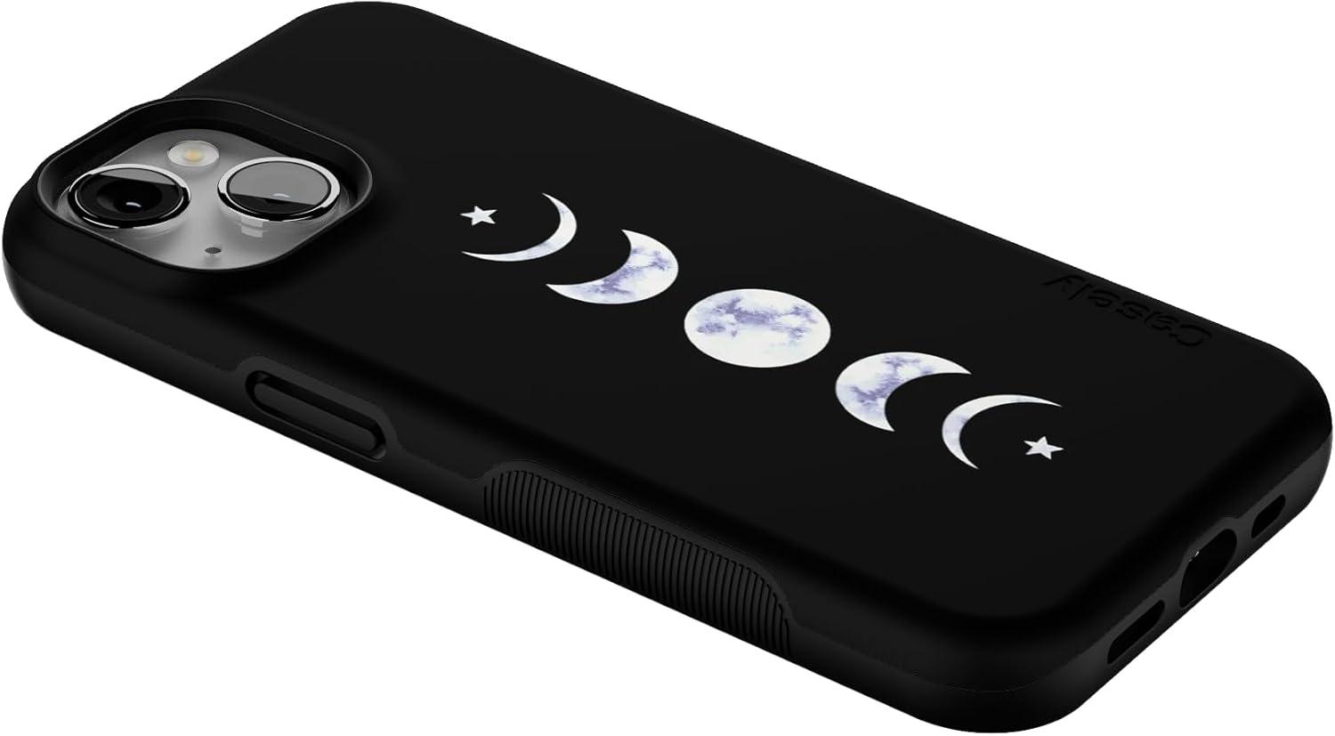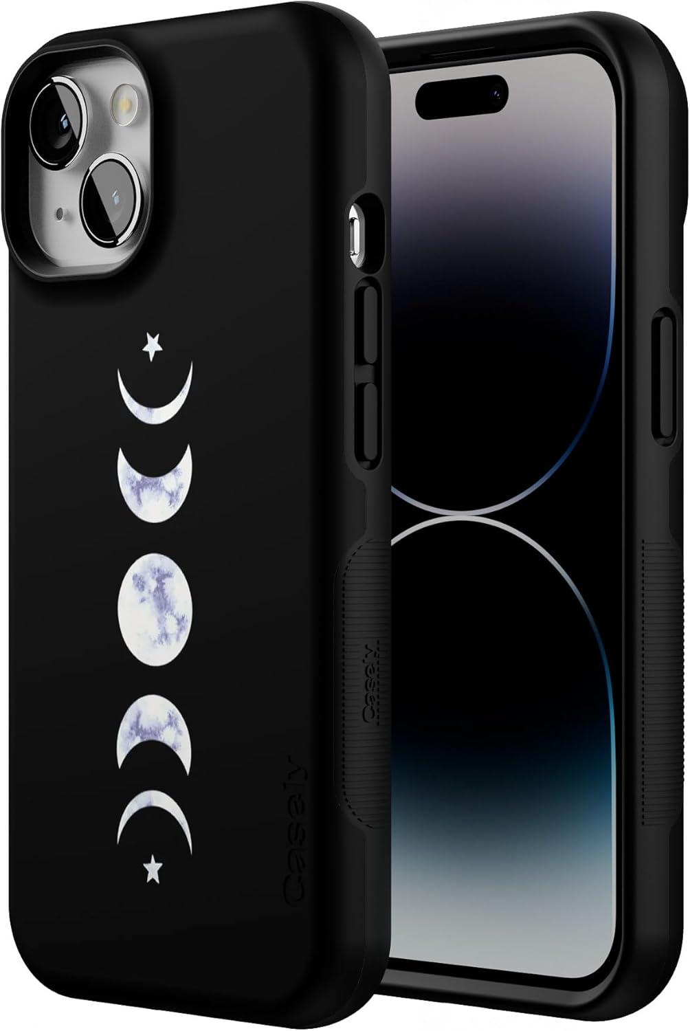 Casely iPhone 14 Case | Blue Stripes | Sunday Best | Bold Protective Design | Compatible with MagSafe(It’s Just a Phase | Marble Moon)
