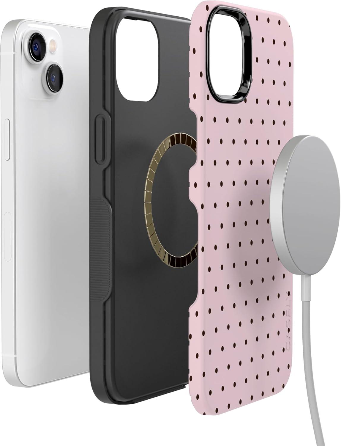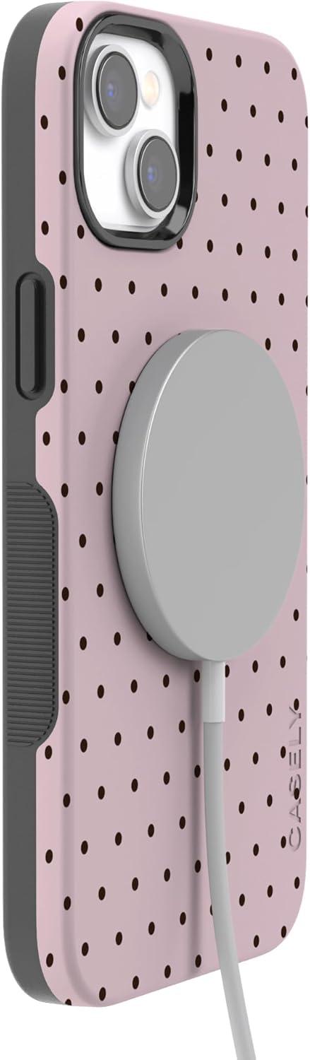 Casely iPhone 14 Case | Blue Stripes | Sunday Best | Bold Protective Design | Compatible with MagSafe(On the Dot | Pink Polka Dot)