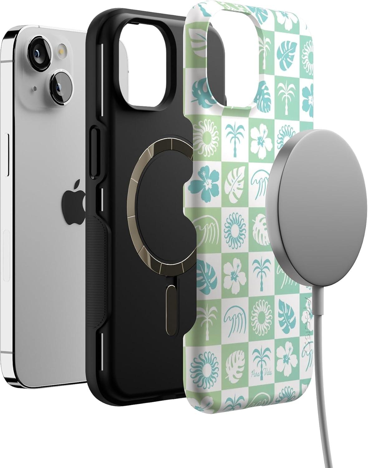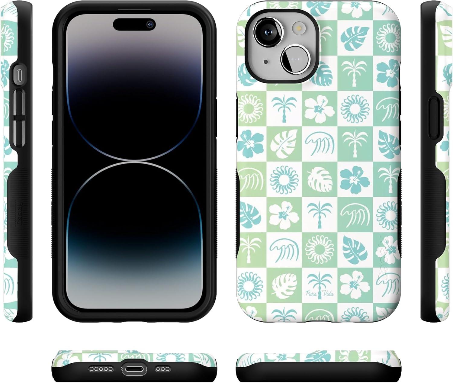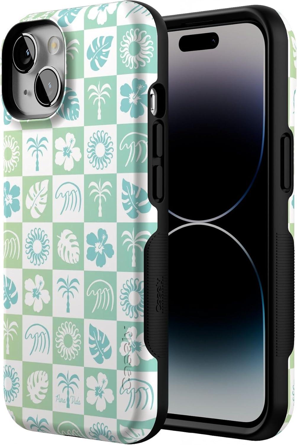 Casely iPhone 14 Case | Blue Stripes | Sunday Best | Bold Protective Design | Compatible with MagSafe(Pura Vida | Coastal Checkers)