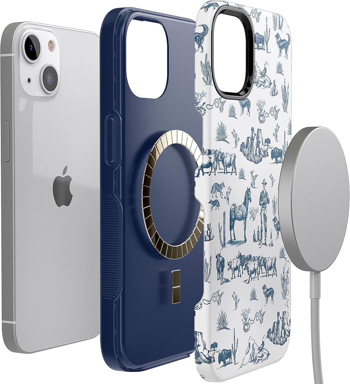 Casely iPhone 14 Case | Blue Stripes | Sunday Best | Bold Protective Design | Compatible with MagSafe(Wild West Adventure | Desert)