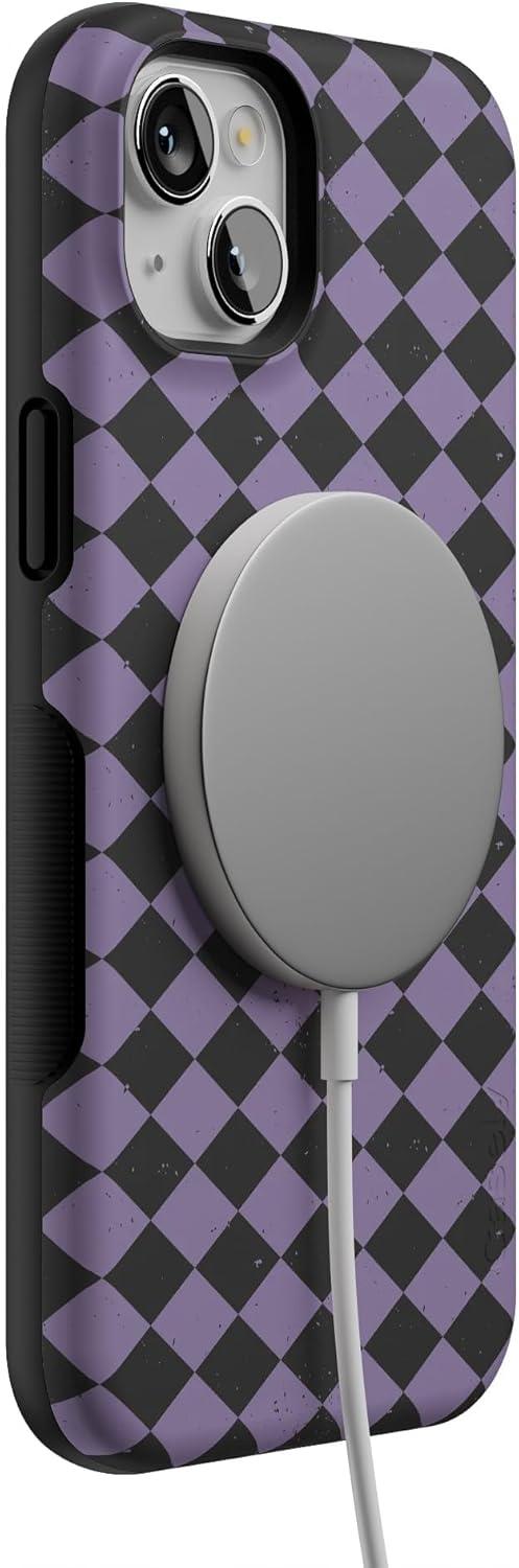 Casely iPhone 14 Case | Harlequin Midnight Diamond | Black and Purple | Bold Protective Design | MagSafe Compatible Design