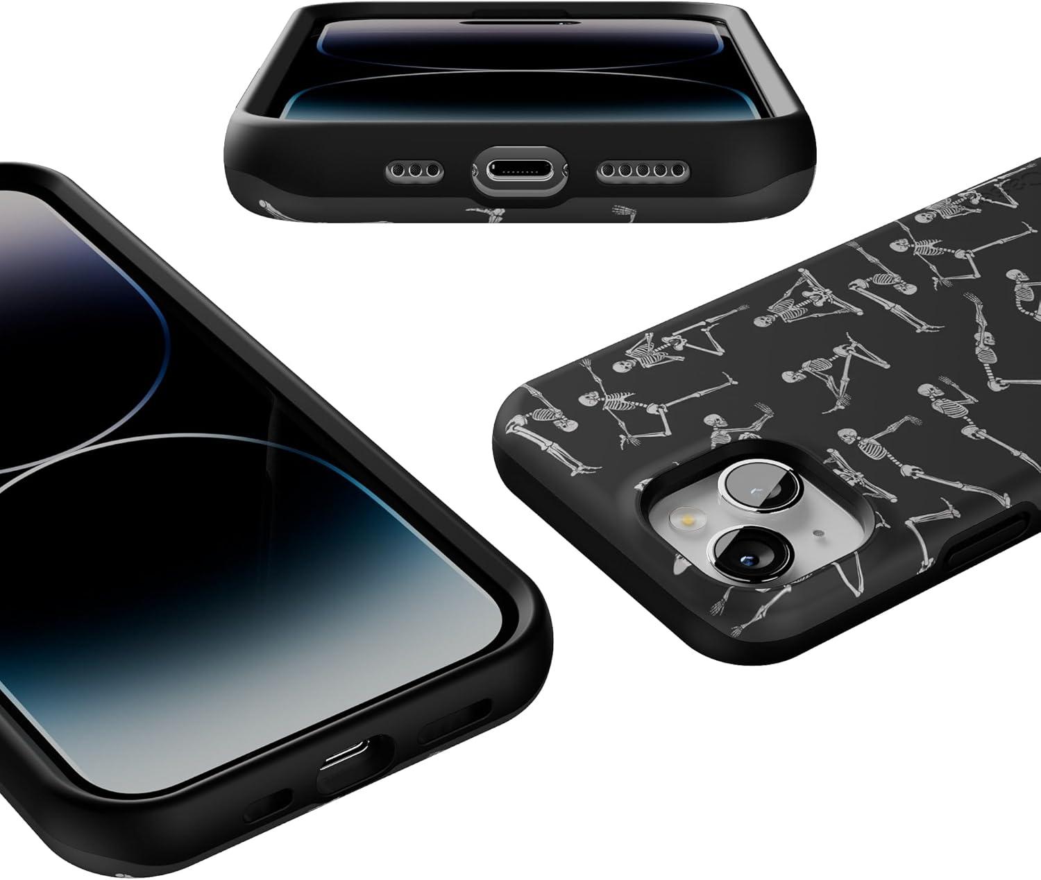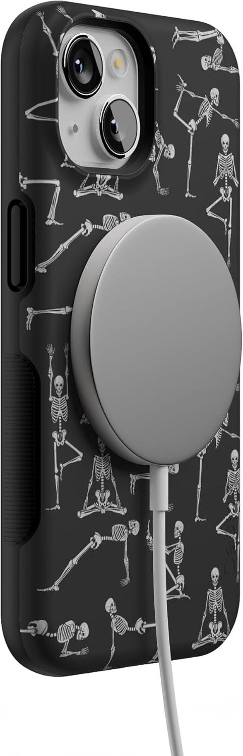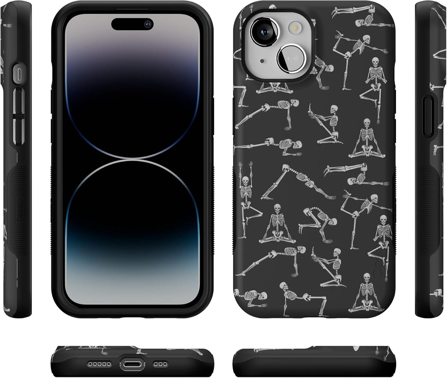 Casely iPhone 14 Case | Lovebug | Blue Hearts | Bold Protective Design | Compatible with MagSafe(Corpse Pose | Skeleton Yoga)