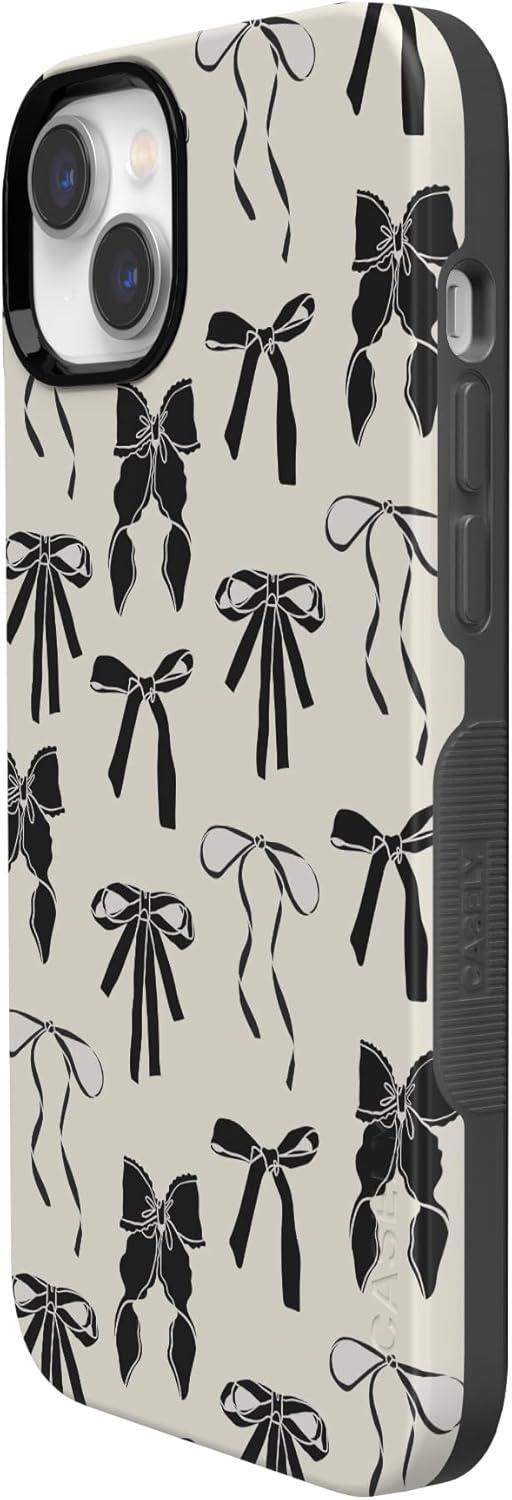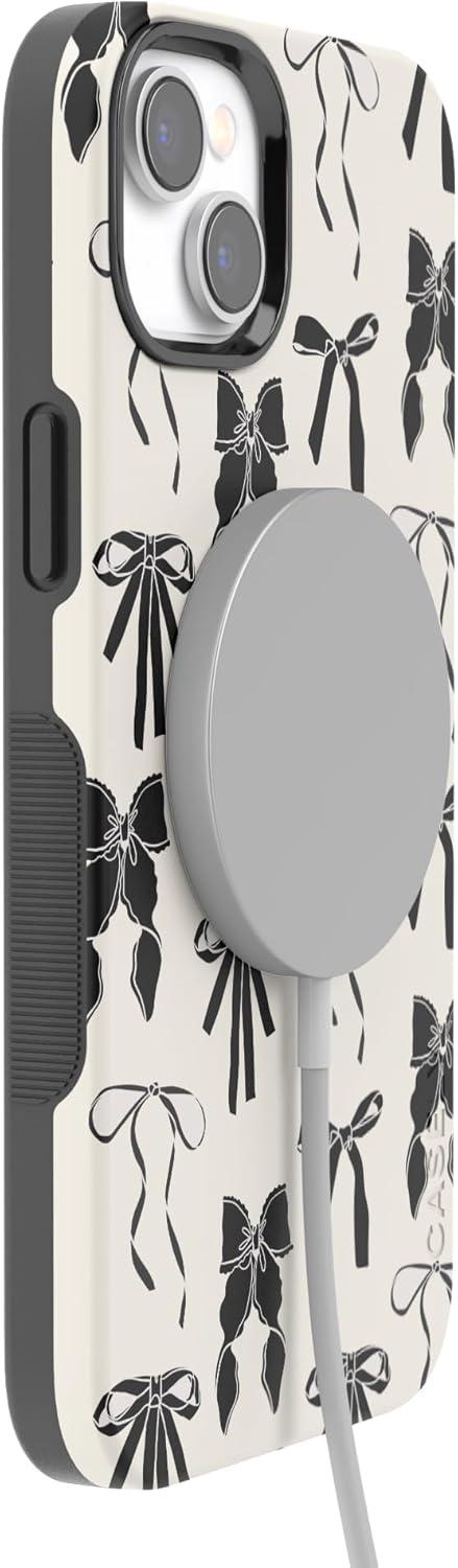 Casely iPhone 14 Case | Lovebug | Blue Hearts | Bold Protective Design | Compatible with MagSafe(Goth Girlie | Black Bows)