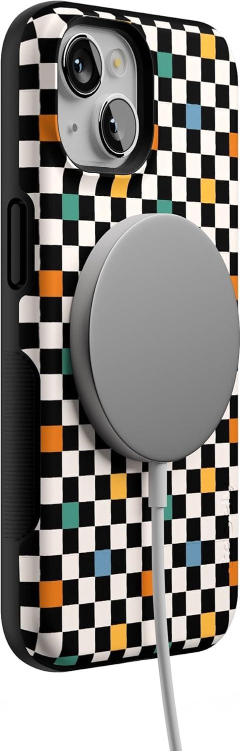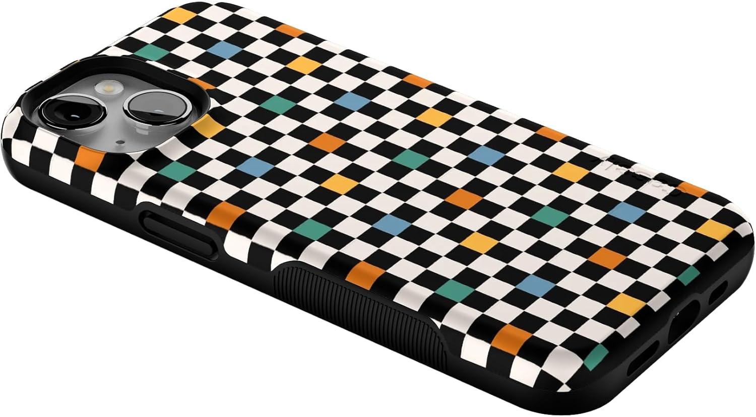 Casely iPhone 14 Case | Lovebug | Blue Hearts | Bold Protective Design | Compatible with MagSafe(Old Skool | Retro Checkerboard)