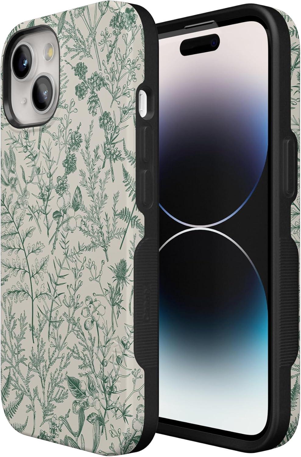 Casely iPhone 14 Case | Lovebug | Blue Hearts | Bold Protective Design | Compatible with MagSafe(Sage Garden | Green Floral)