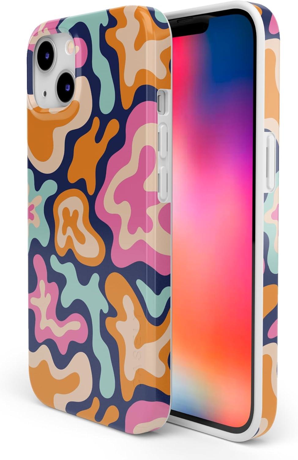 Casely iPhone 14 Case | Moody Monochrome | Bordeaux Rose | Compatible with MagSafe | Classic Ultra Thin Design(Midnight Color Splash | Abstract Retro)