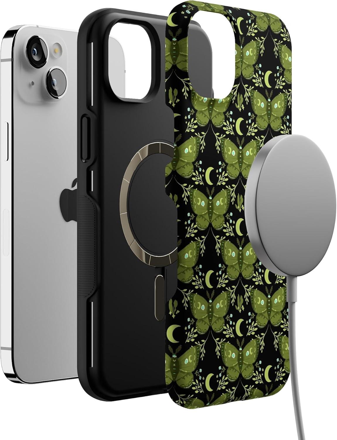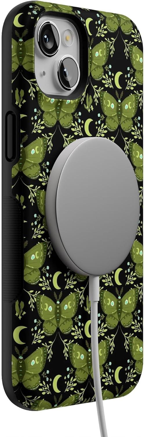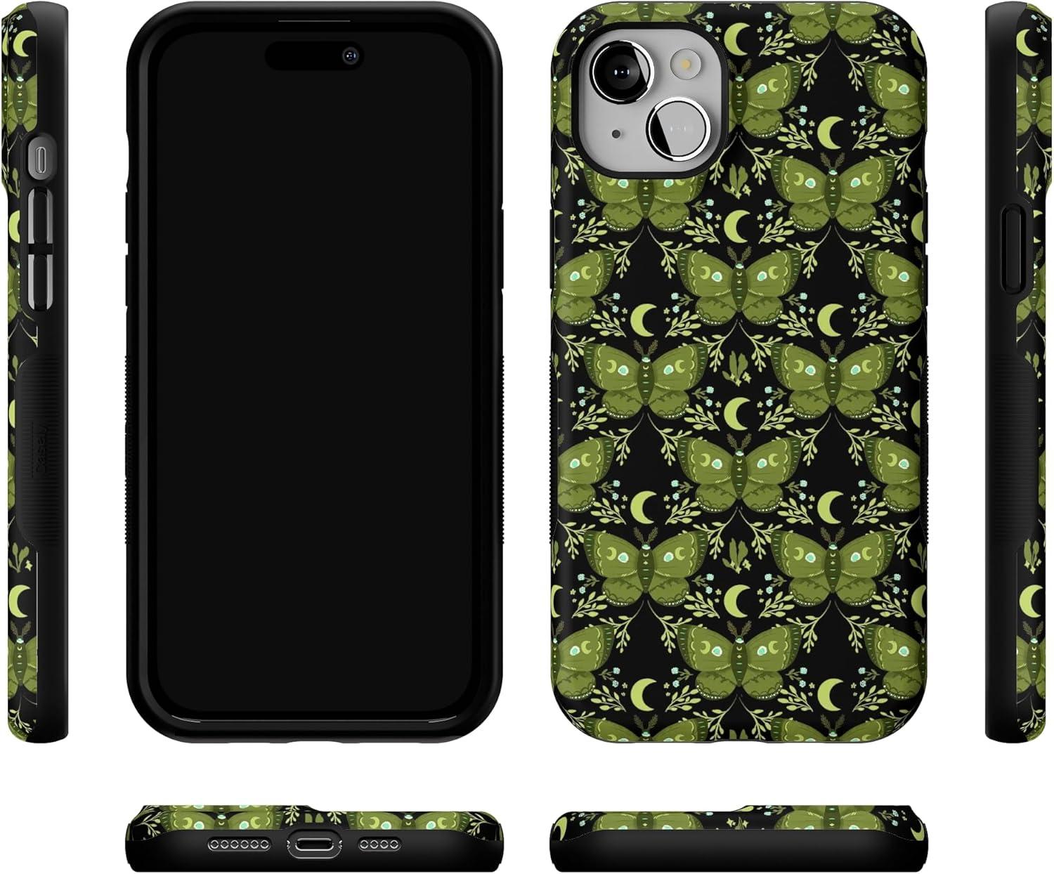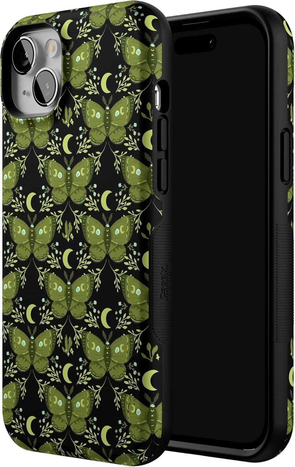 Casely iPhone 14 Case | Mystic Moths | Green Twilight | Bold Protective Design | MagSafe Compatible Design
