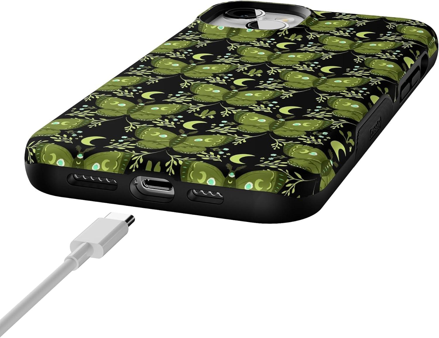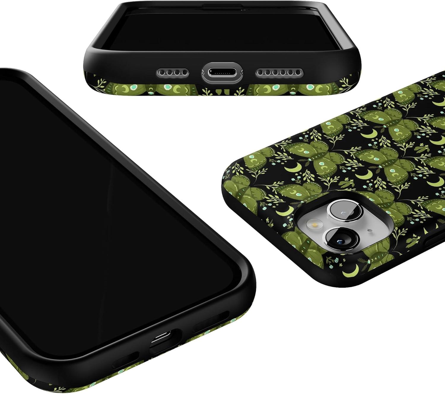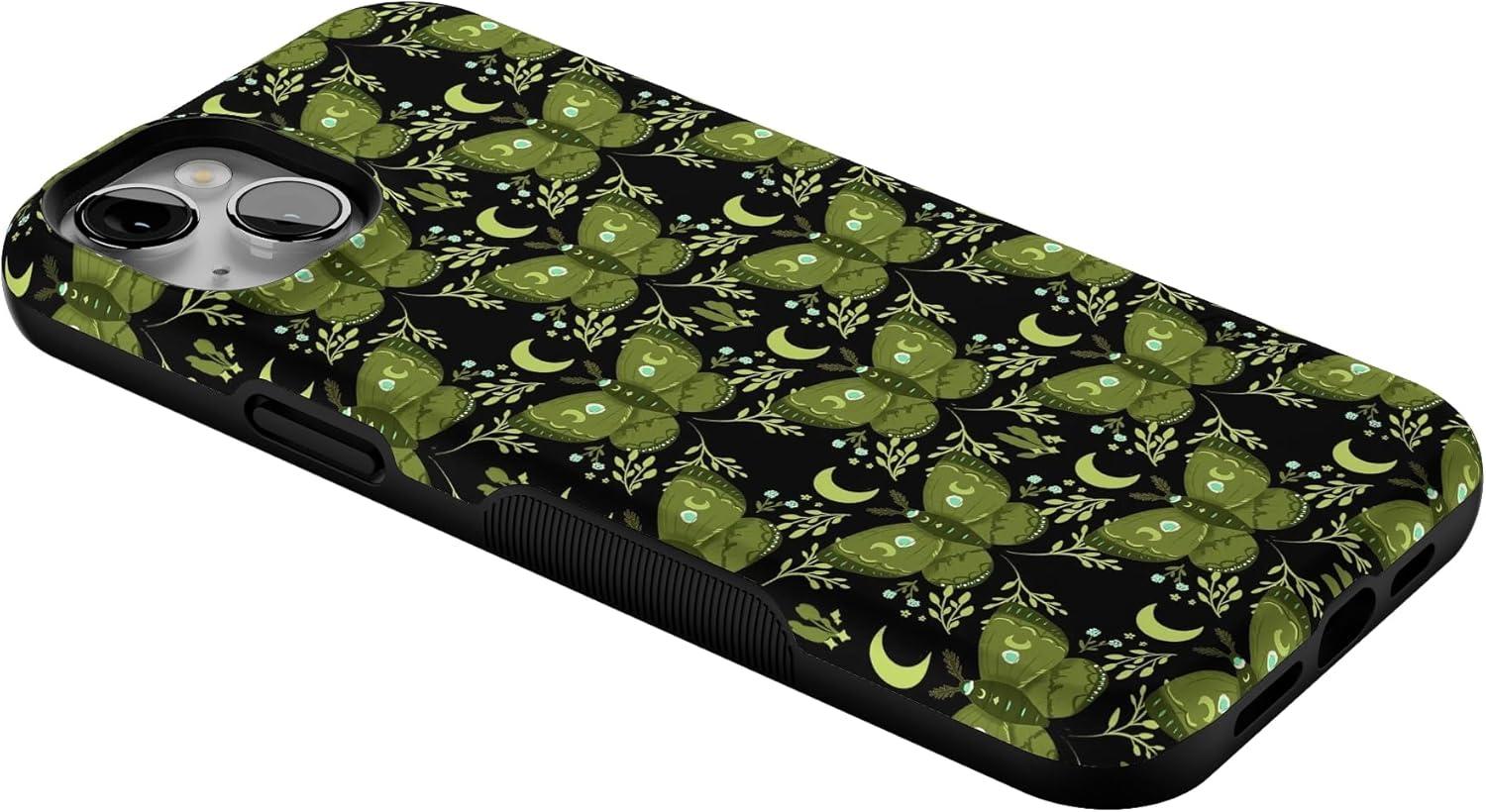 Casely iPhone 14 Case | Mystic Moths | Green Twilight | Bold Protective Design | MagSafe Compatible Design