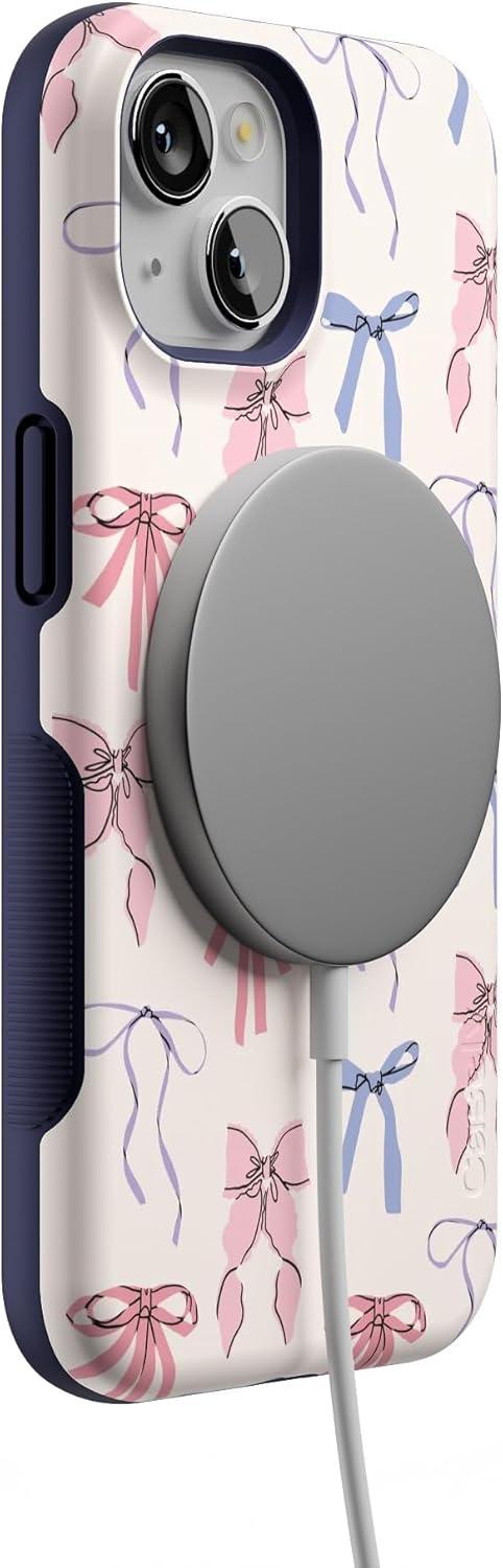 Casely iPhone 14 Case | Night Walk | The Beatles Abbey Road Dual Image | Bold Protective Design | MagSafe Compatible Design(Coquette Girlie | Pastel Bows)