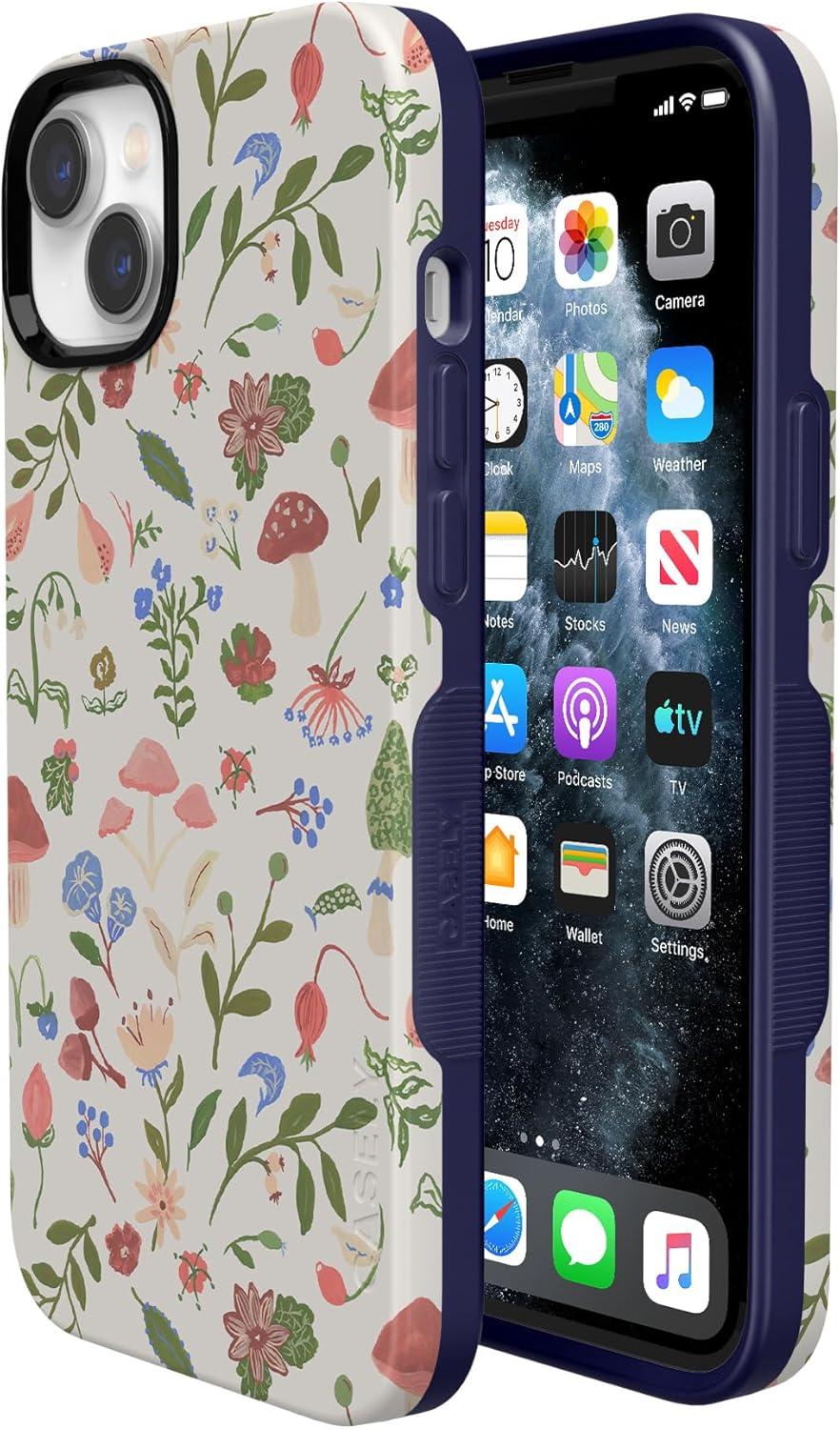 Casely iPhone 14 Case | Night Walk | The Beatles Abbey Road Dual Image | Bold Protective Design | MagSafe Compatible Design(Garden Party | Mushroom Floral)