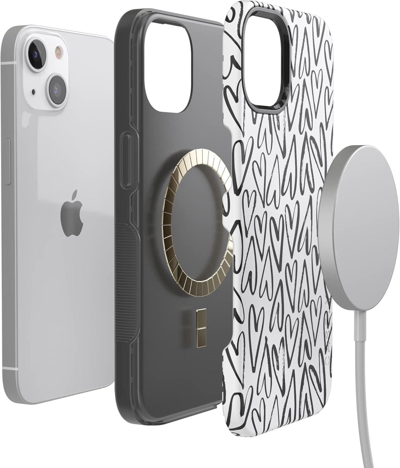 Casely iPhone 14 Case | Night Walk | The Beatles Abbey Road Dual Image | Bold Protective Design | MagSafe Compatible Design(Heart Throb | Endless Hearts)