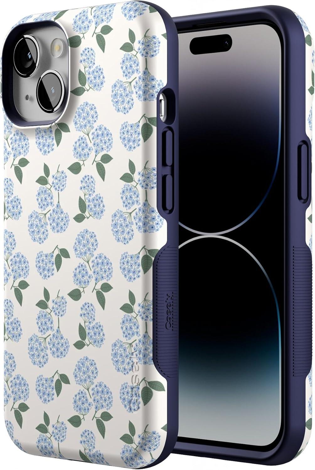 Casely iPhone 14 Case | Night Walk | The Beatles Abbey Road Dual Image | Bold Protective Design | MagSafe Compatible Design(Nantucket Cottage | Blue Hydrangea)