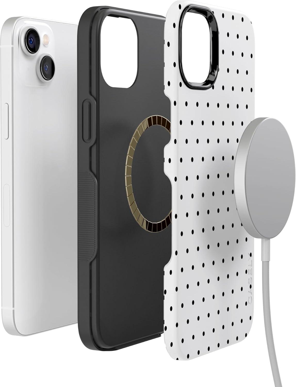 Casely iPhone 14 Case | Night Walk | The Beatles Abbey Road Dual Image | Bold Protective Design | MagSafe Compatible Design(On the Dot | White Polka Dot)