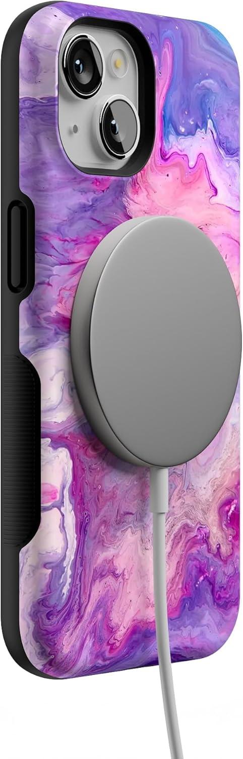 Casely iPhone 14 Case | Night Walk | The Beatles Abbey Road Dual Image | Bold Protective Design | MagSafe Compatible Design(Tie Dying Over You | Purple Marble)