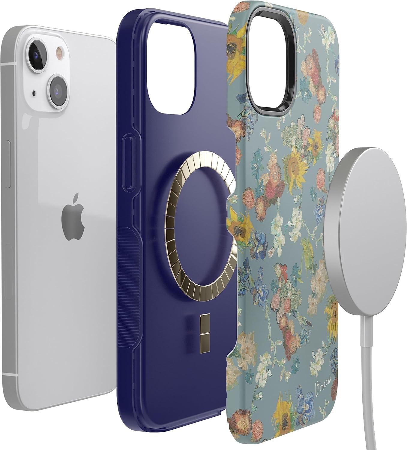 Casely iPhone 14 Case | Night Walk | The Beatles Abbey Road Dual Image | Bold Protective Design | MagSafe Compatible Design(Van Gogh | Vincent’s Flowers)
