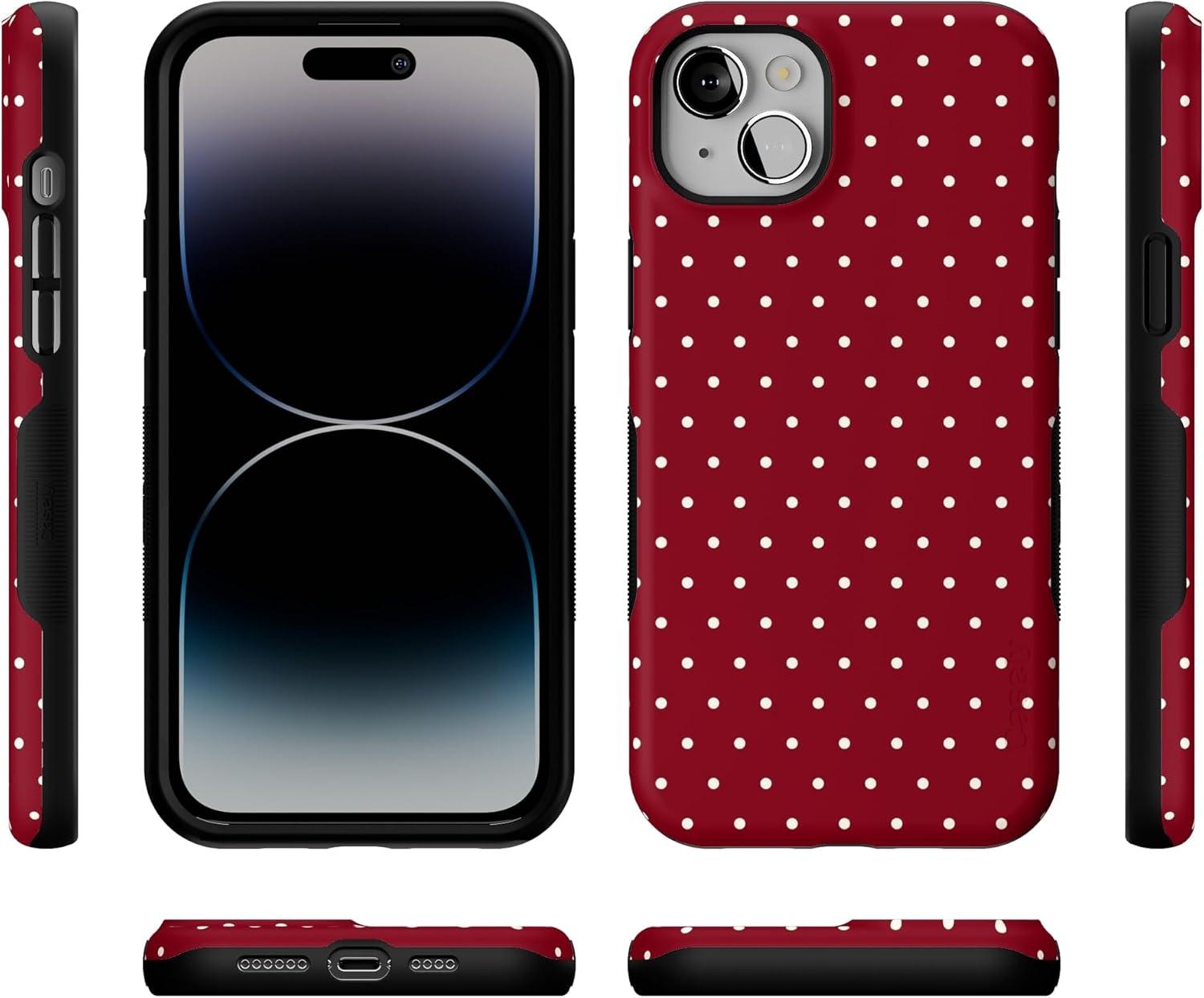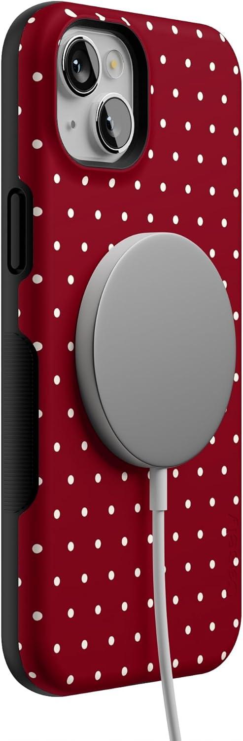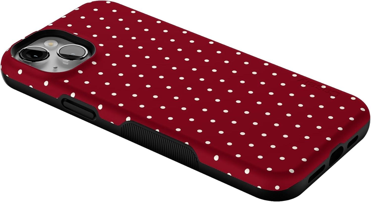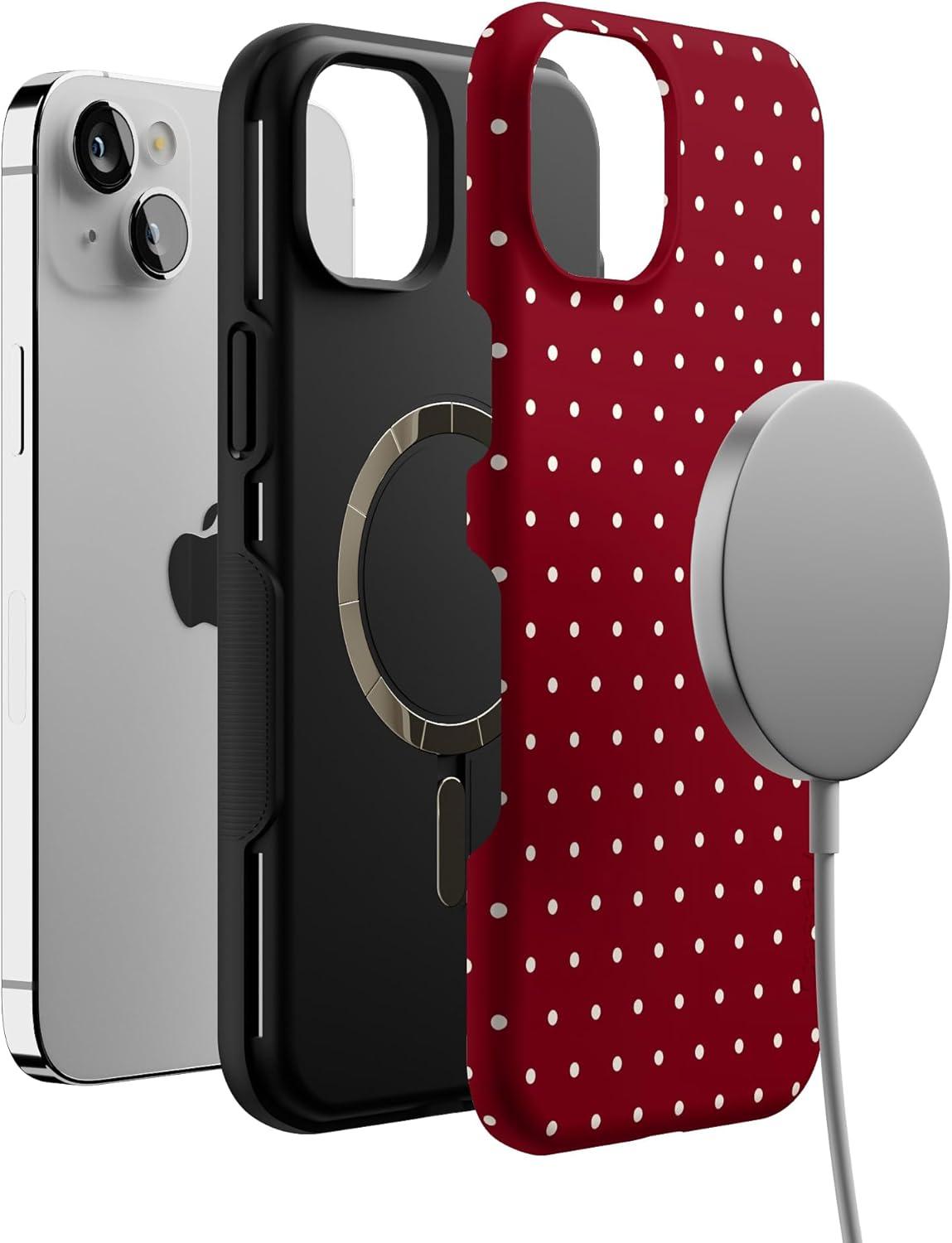 Casely iPhone 14 Case | On The Dot | Maroon Polka Dot | Bold Protective Design | MagSafe Compatible Design