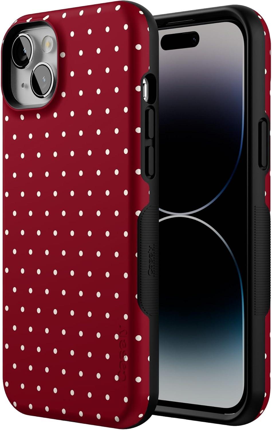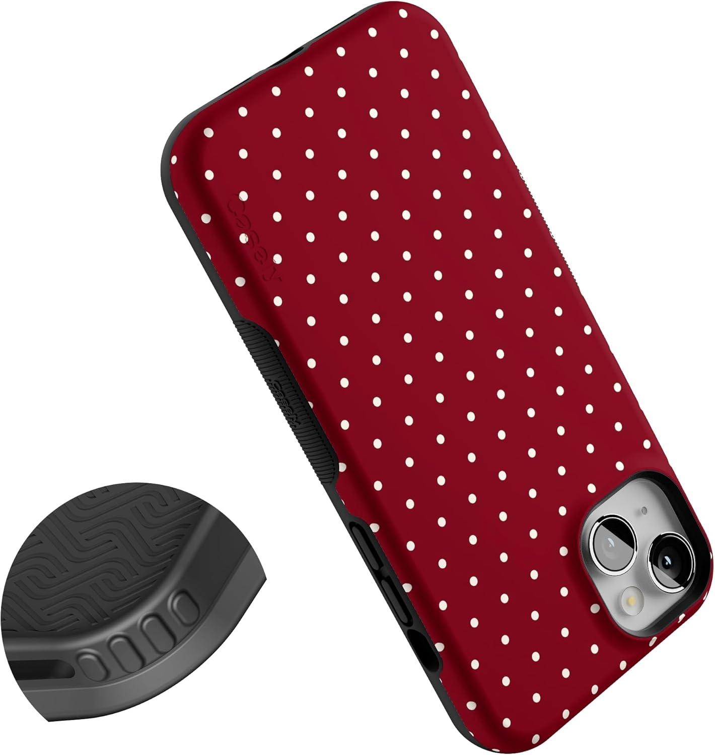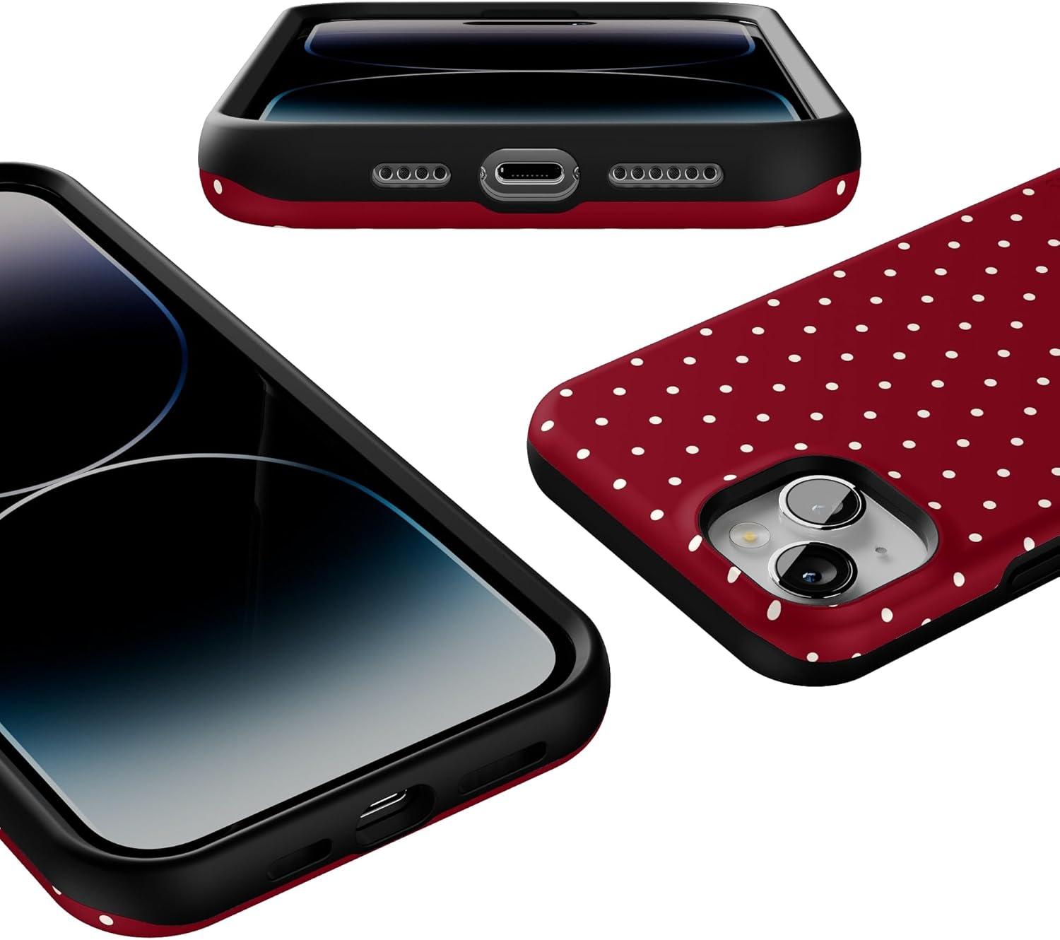 Casely iPhone 14 Case | On The Dot | Maroon Polka Dot | Bold Protective Design | MagSafe Compatible Design