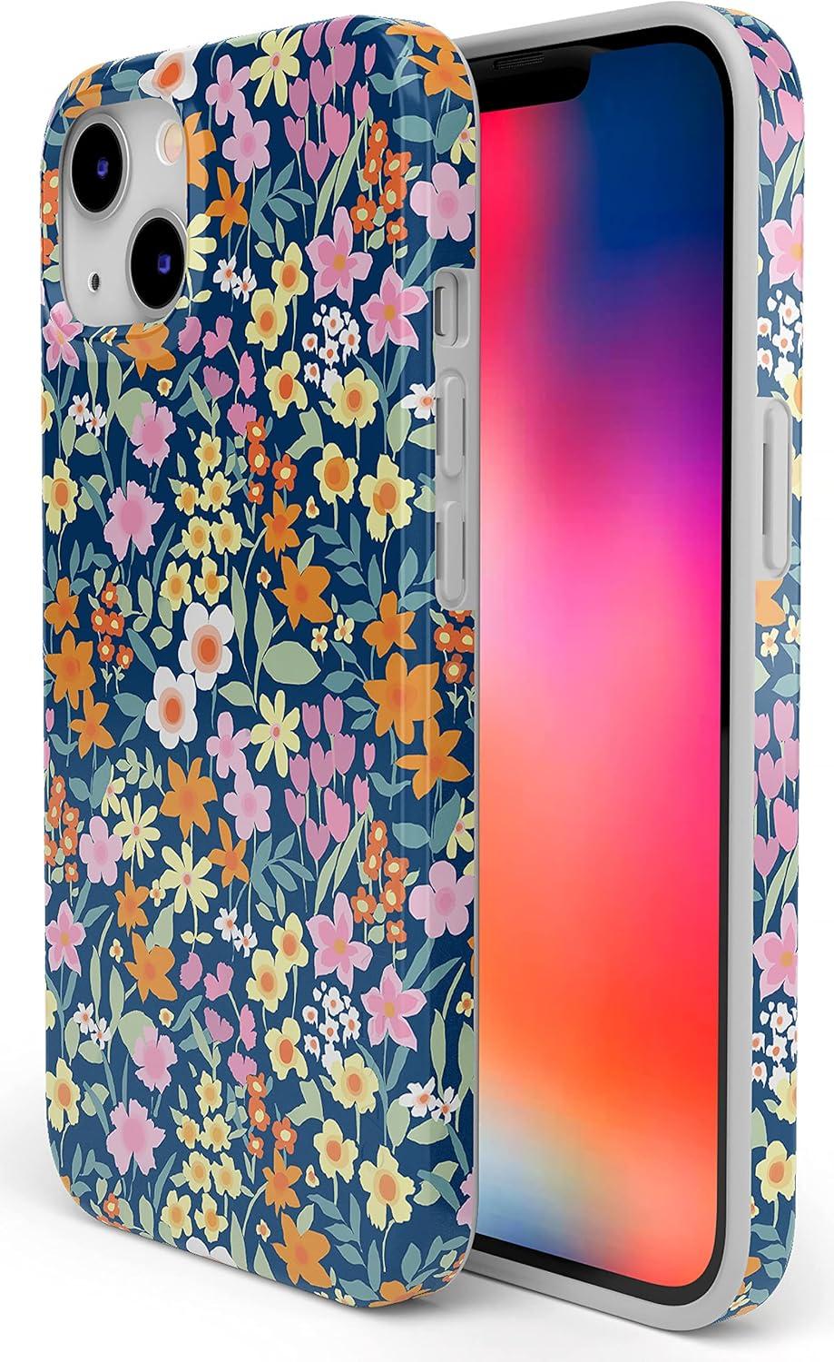 Casely iPhone 14 Case | Sage Garden | Green Floral | Compatible with MagSafe | Classic Ultra Slim Design(Full Bloom | Navy Floral)
