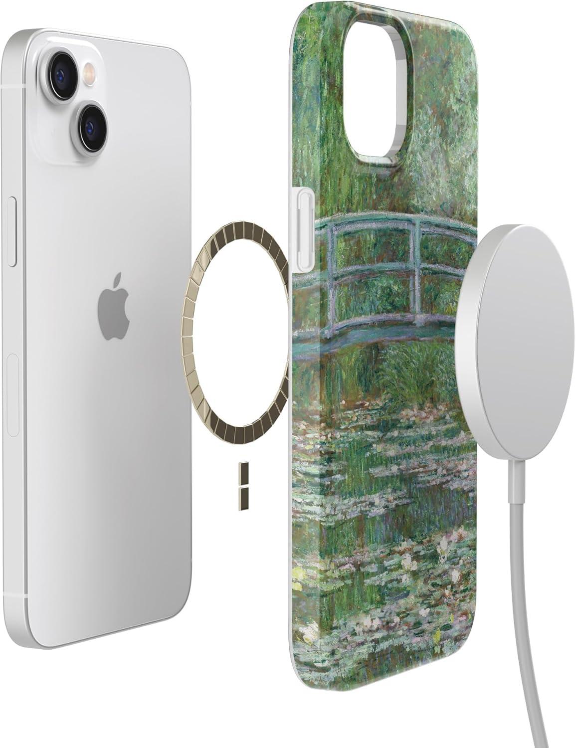 Casely iPhone 14 Case | Sage Garden | Green Floral | Compatible with MagSafe | Classic Ultra Slim Design(Monet’s Bridge | The Met Museum)