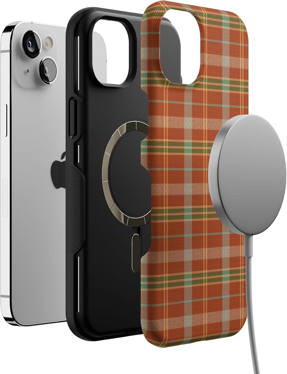 Casely iPhone 14 Case | Spiced Chai | Fall Plaid | Bold Protective Design | MagSafe Compatible Design