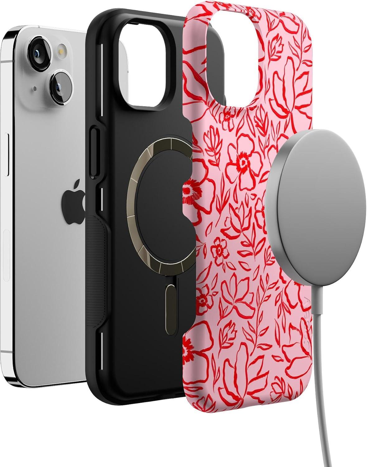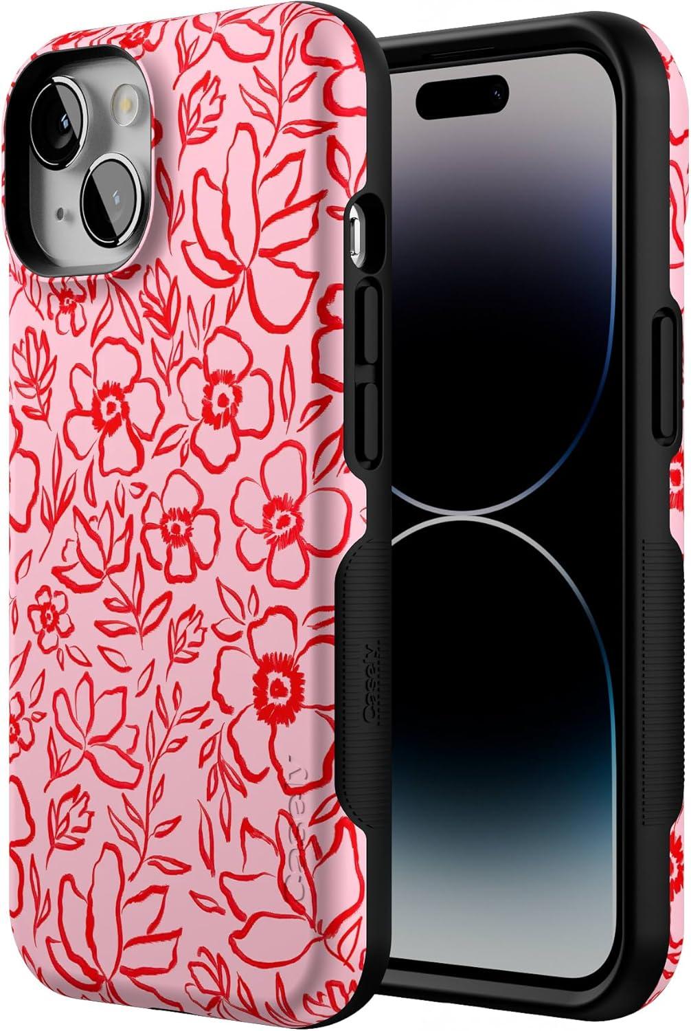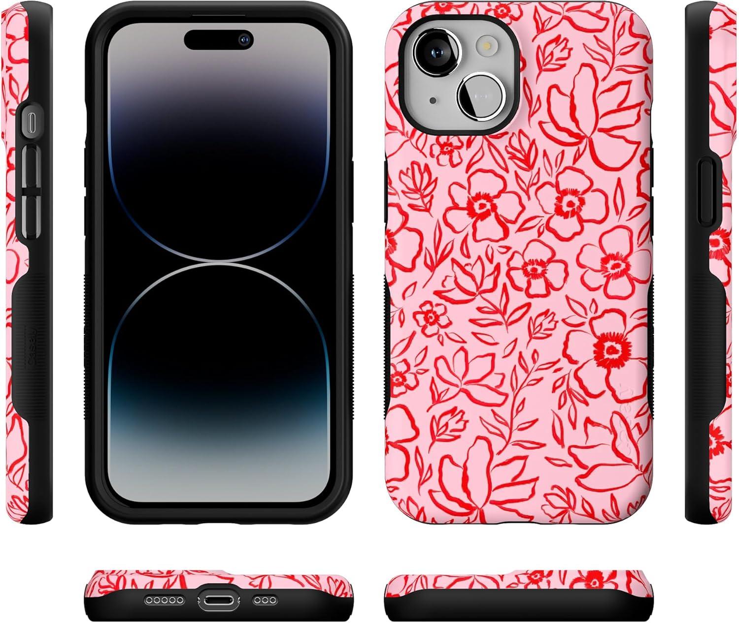 Casely iPhone 14 Case | You Can’t Catch Me | Gingerbread Man | Bold Protective Design | Compatible with MagSafe(Blush Garden | Floral Doodle)