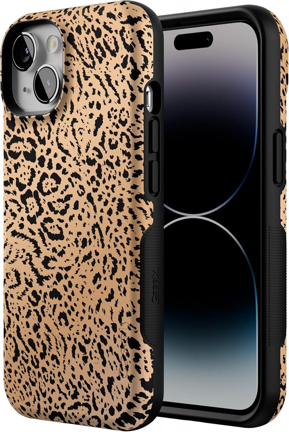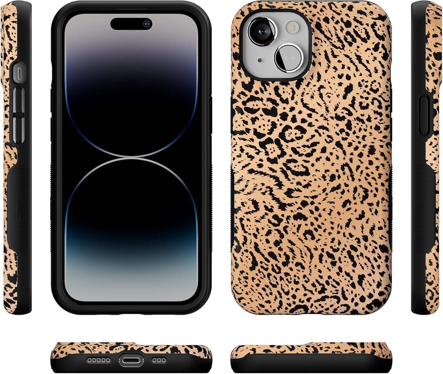 Casely iPhone 14 Case | You Can’t Catch Me | Gingerbread Man | Bold Protective Design | Compatible with MagSafe(Born to Be Wild | Jaguar Print)