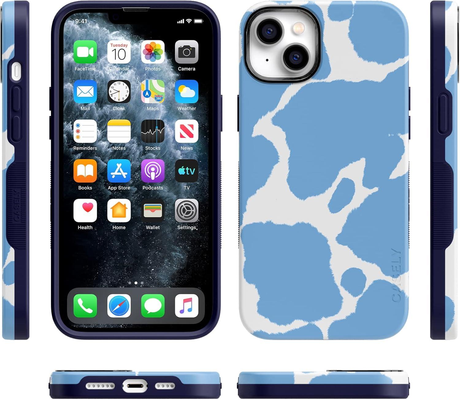 Casely iPhone 14 Case | You Can’t Catch Me | Gingerbread Man | Bold Protective Design | Compatible with MagSafe(Current MOOd | Light Blue Cow Print)