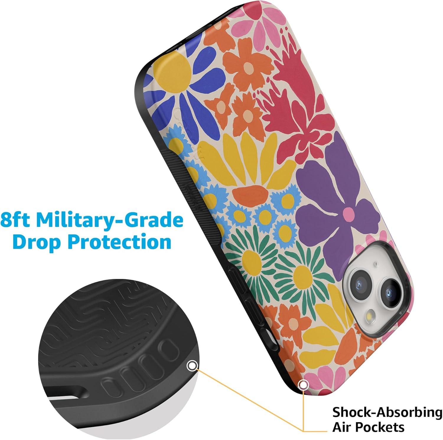 Casely iPhone 14 Case | You Can’t Catch Me | Gingerbread Man | Bold Protective Design | Compatible with MagSafe(Flower Patch | Multi-Color Floral)