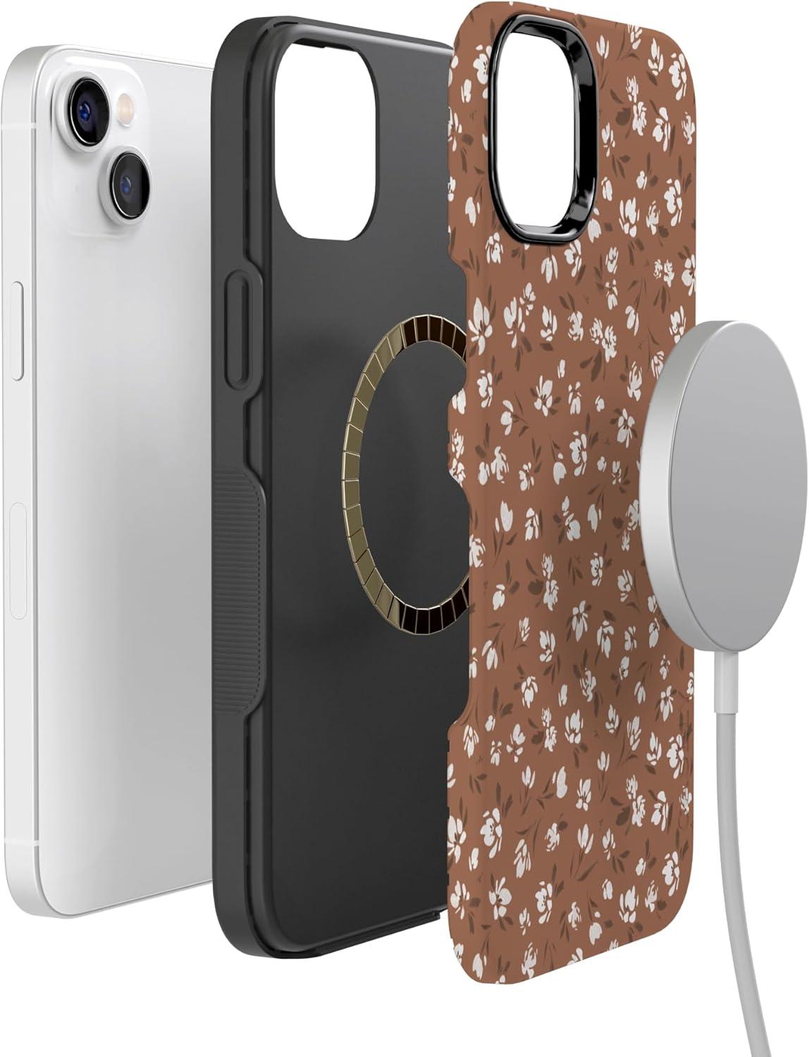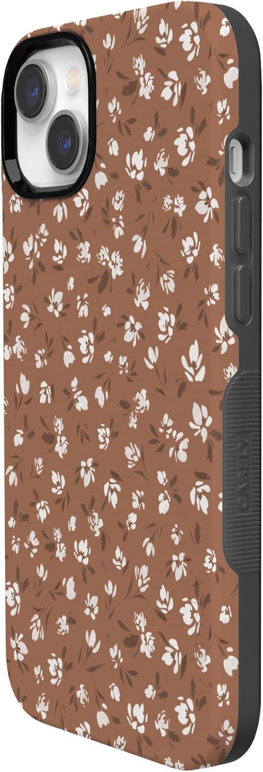 Casely iPhone 14 Case | You Can’t Catch Me | Gingerbread Man | Bold Protective Design | Compatible with MagSafe(Mocha Meadow | Tiny Flowers)