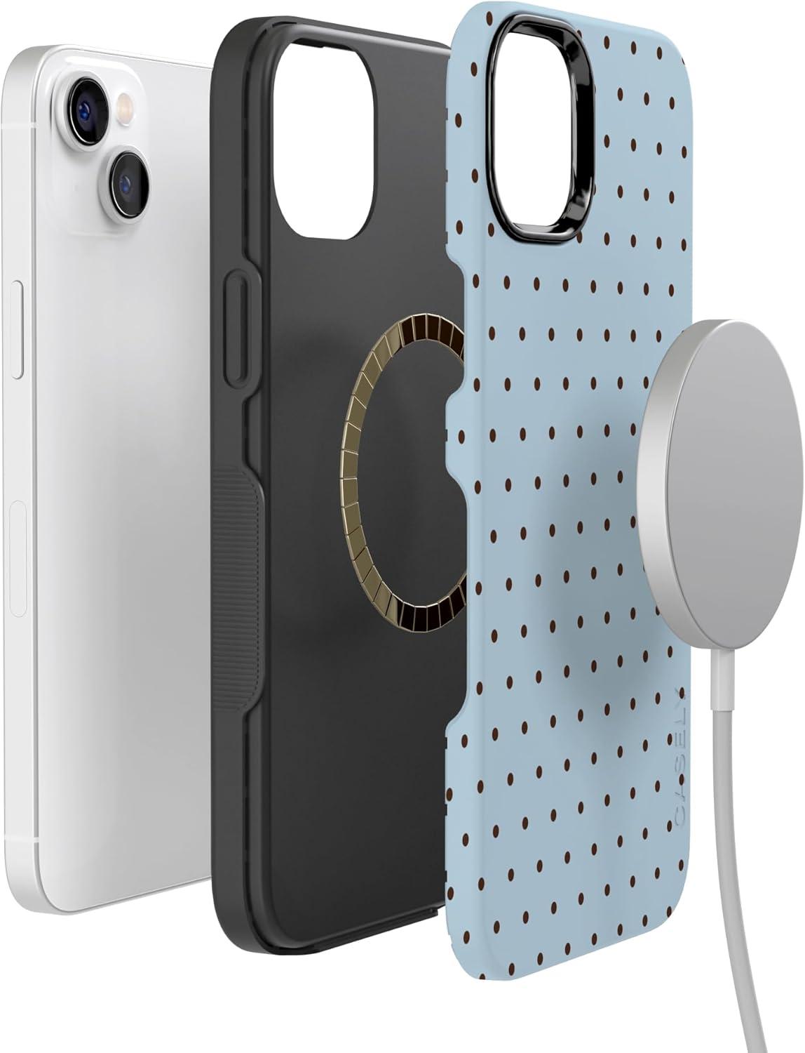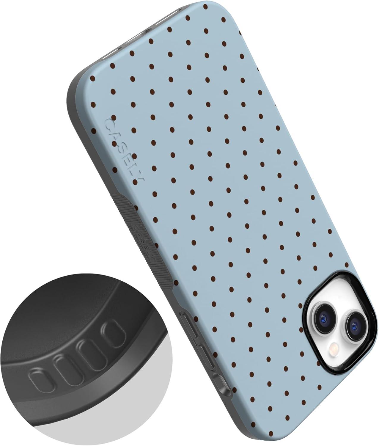 Casely iPhone 14 Case | You Can’t Catch Me | Gingerbread Man | Bold Protective Design | Compatible with MagSafe(On the Dot | Blue Polka Dot)