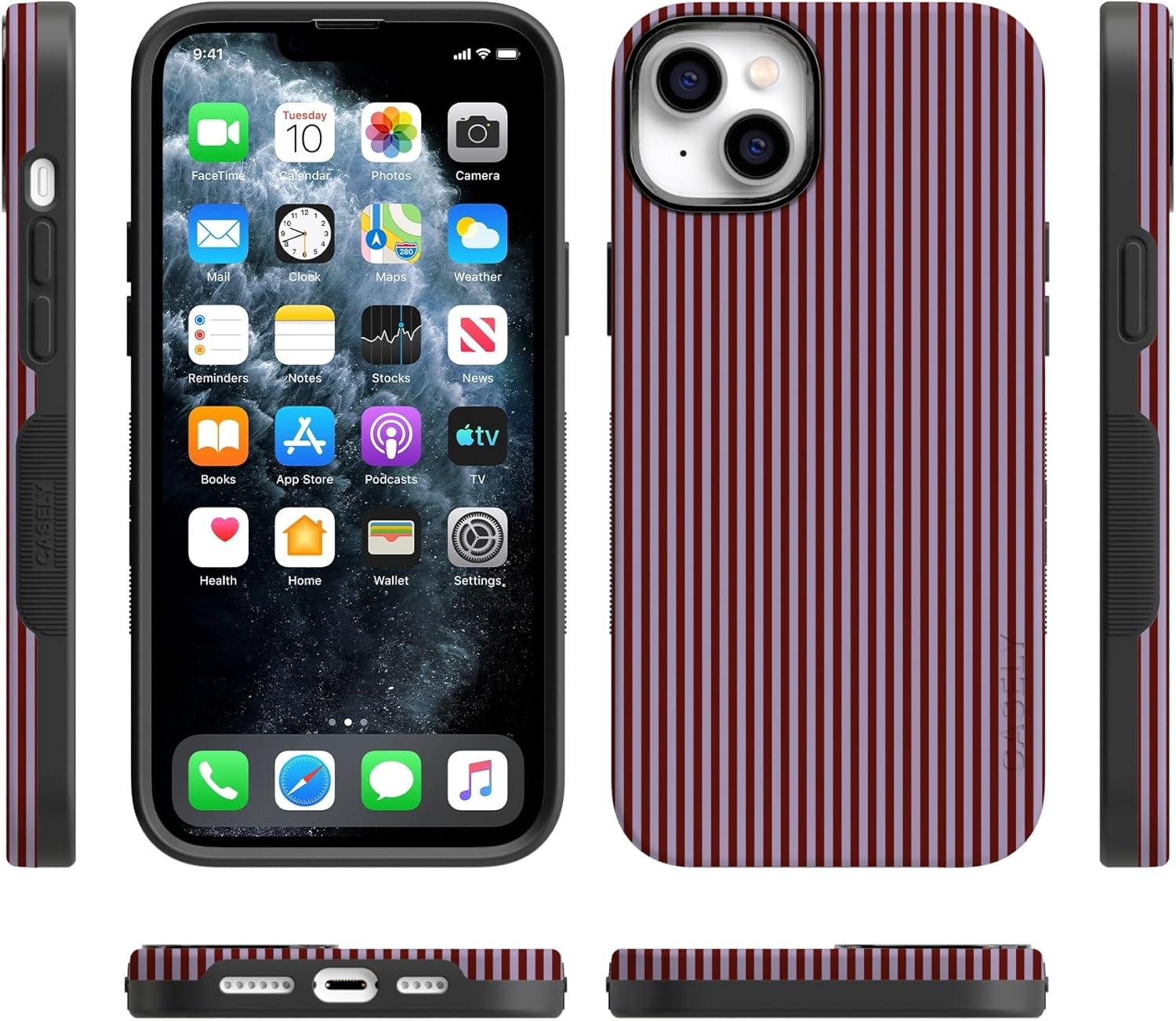 Casely iPhone 14 Case | You Can’t Catch Me | Gingerbread Man | Bold Protective Design | Compatible with MagSafe(Stripes and the City | Tiny Pinstripe)