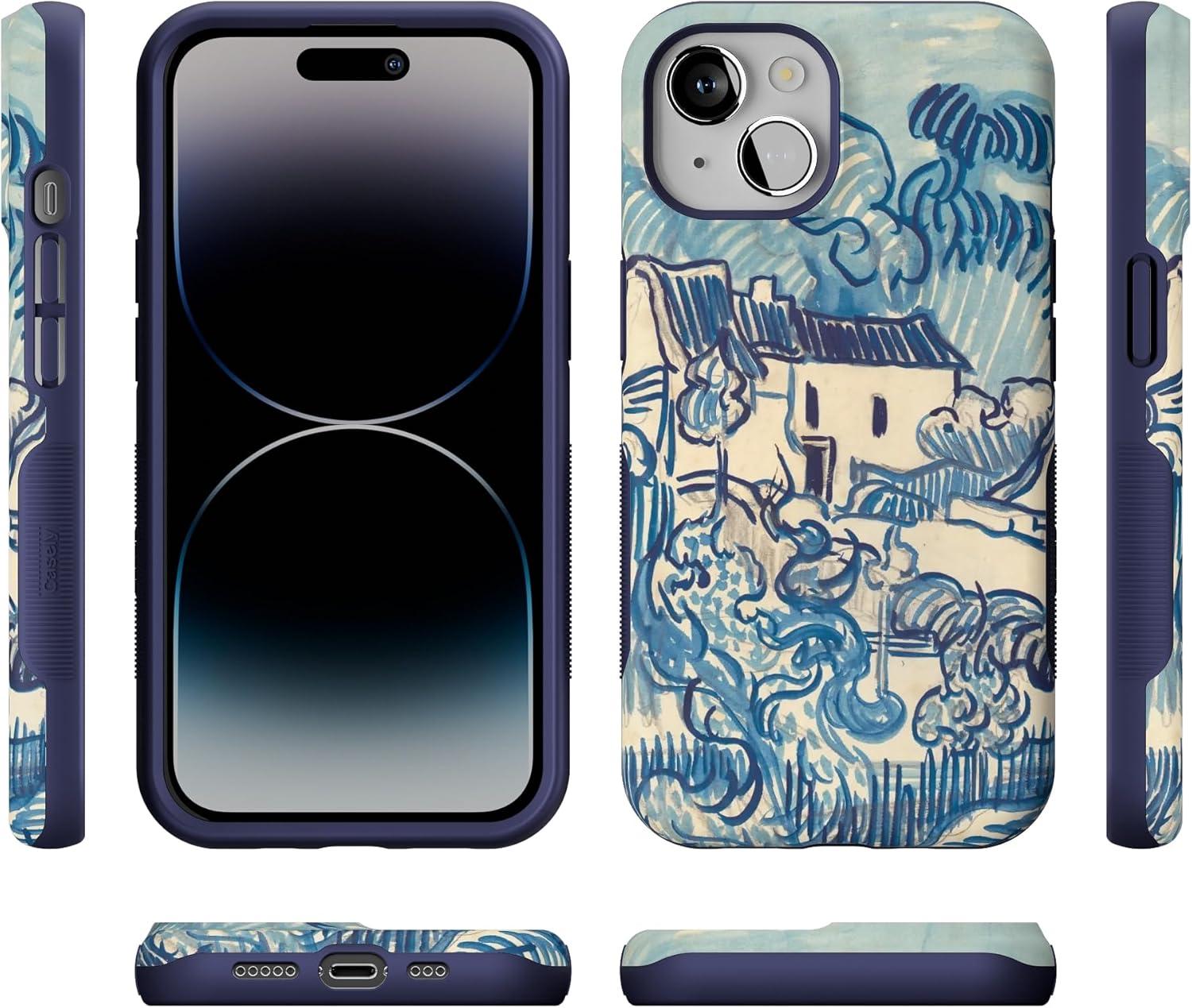 Casely iPhone 14 Case | You Can’t Catch Me | Gingerbread Man | Bold Protective Design | Compatible with MagSafe(Van Gogh | Landscape With Houses)