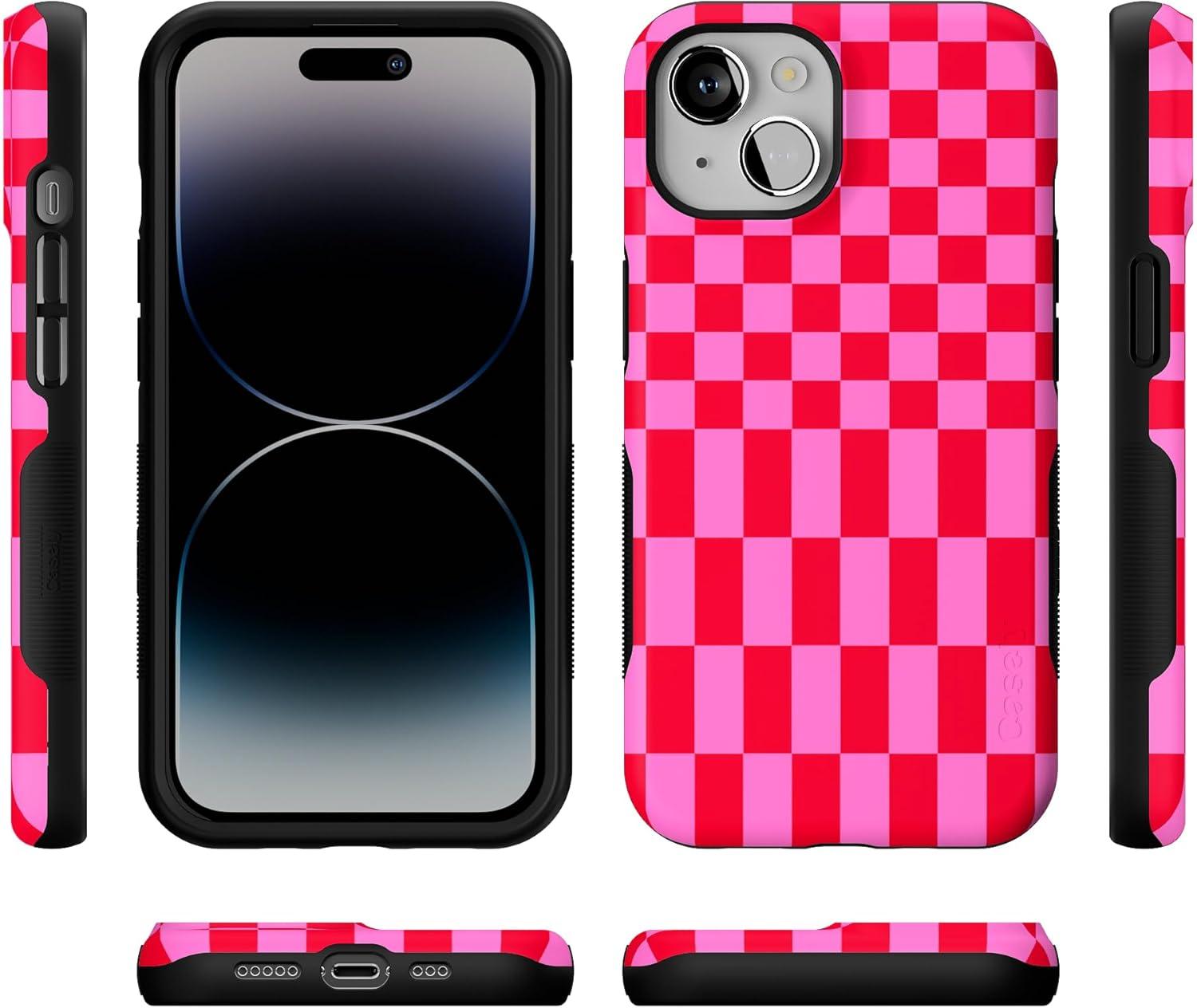 Casely iPhone 14 Case | You Can’t Catch Me | Gingerbread Man | Bold Protective Design | Compatible with MagSafe(Vibe Check | Pink Checkerboard)