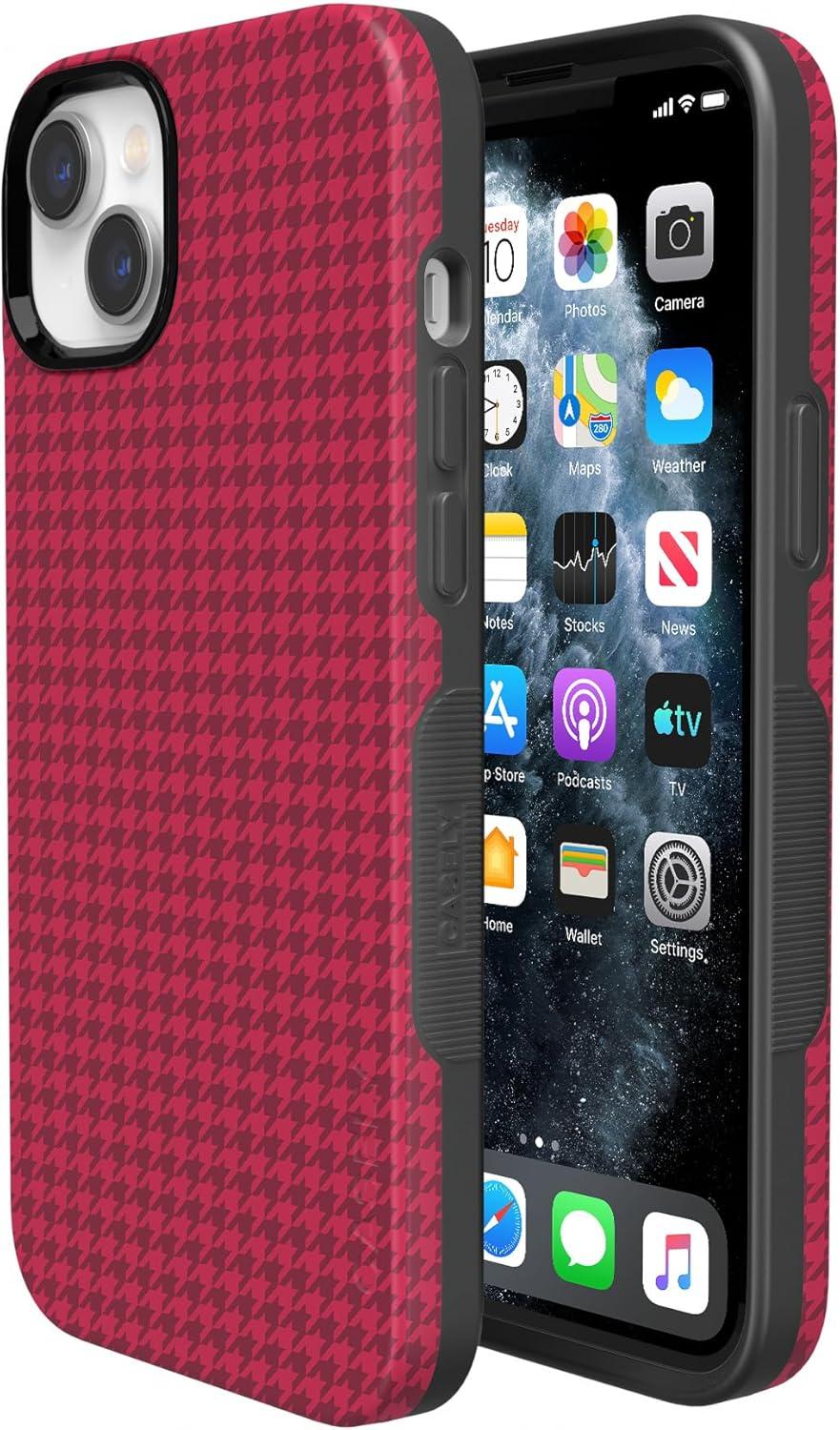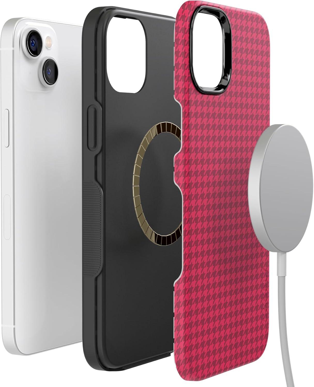 Casely iPhone 14 Plus Case | Best Dressed | Red Houndstooth | Bold Protective Design | MagSafe Compatible Design