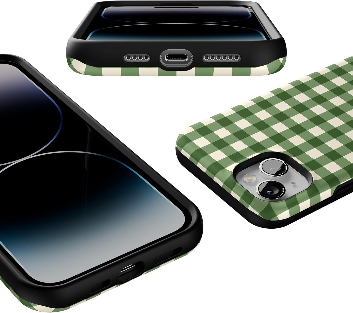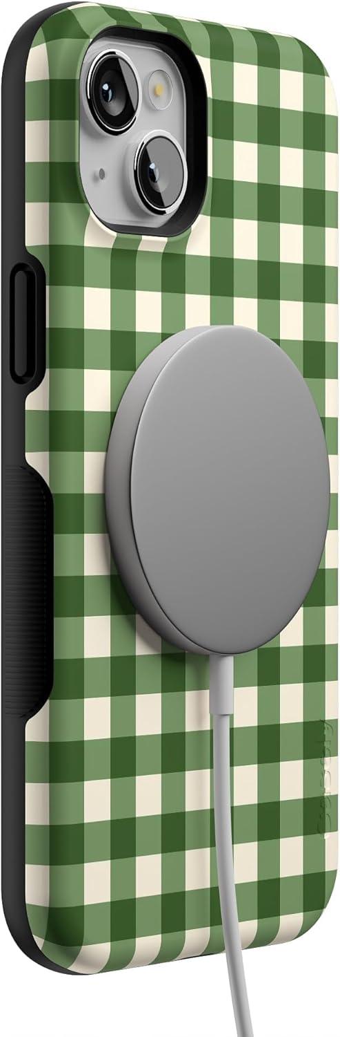Casely iPhone 14 Plus Case | Checked Twice | Green Plaid | Bold Protective Design | MagSafe Compatible Design