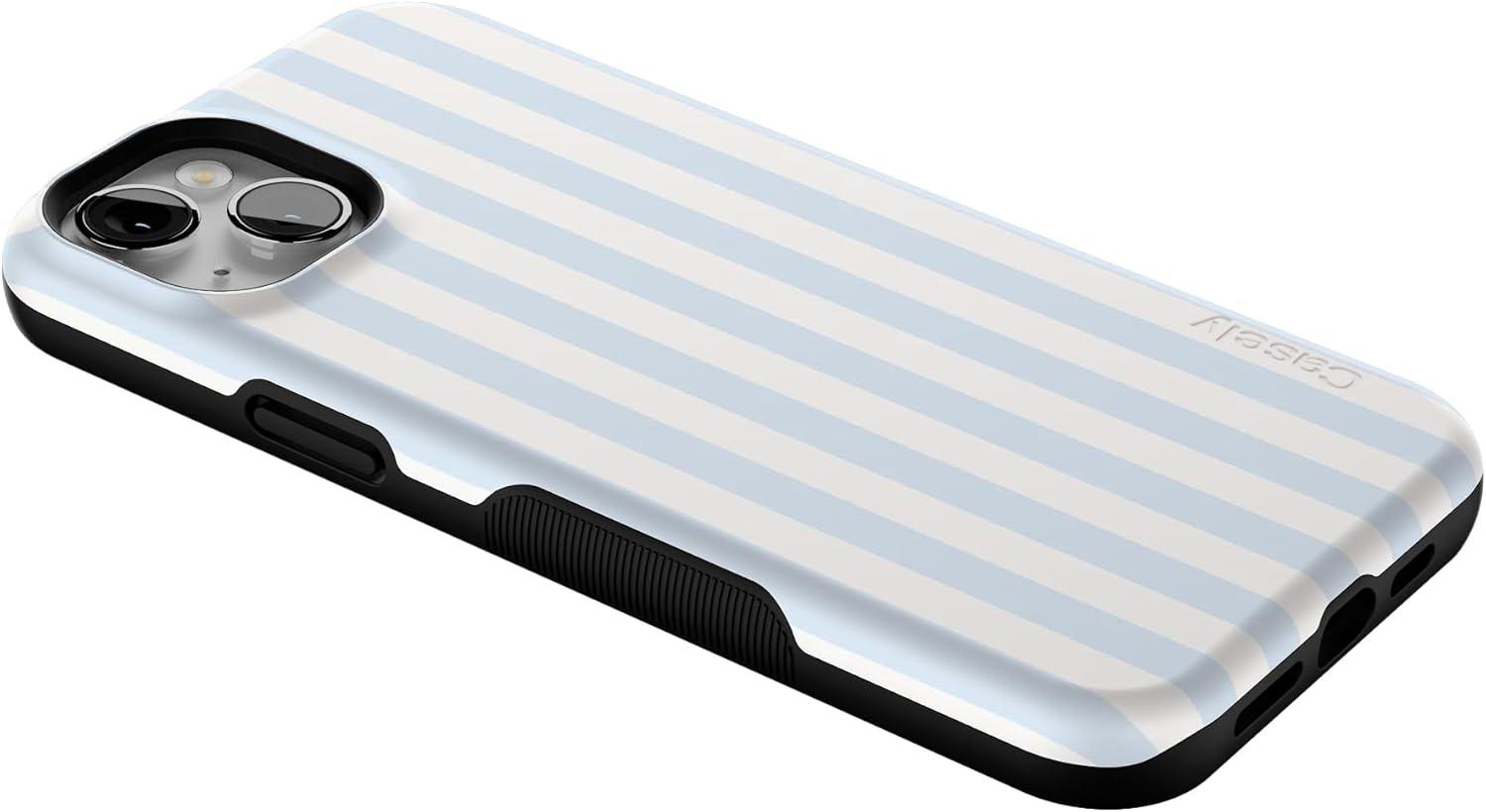 Casely iPhone 14 Plus Case | Coquette Girlie | Pastel Bows | Bold Protective Design | Compatible with MagSafe(Blue Stripes | Sunday Best)