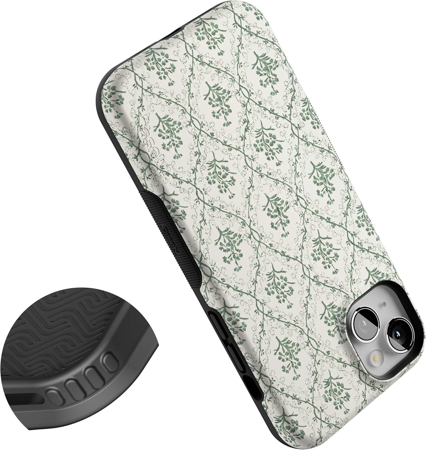 Casely iPhone 14 Plus Case | Coquette Girlie | Pastel Bows | Bold Protective Design | Compatible with MagSafe(Floral Vines | Sage Tapestry)