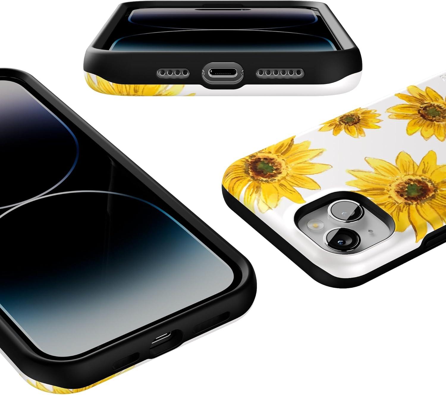 Casely iPhone 14 Plus Case | Coquette Girlie | Pastel Bows | Bold Protective Design | Compatible with MagSafe(Golden Garden | Yellow Sunflower)